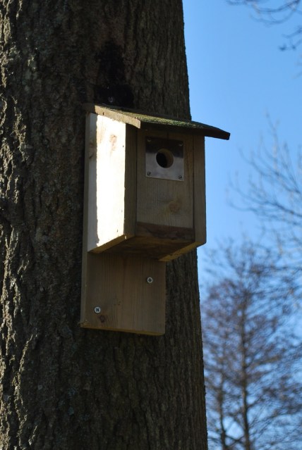 During last summer, whilst a pair of blue tits were raising a second brood, a grey squirrel gnawed into the box and ate the young. Nasty, foulbreathed, twitchy-nosed miscreant. I have heard similar stories before but never experienced it. A few year’s ago my Dad-in-Law, took great delight in watching a clutch of wrens being raised in a nest box on his garden shed. That is, until a magpie raided it and ate all the babies. So today, having made a new (fifth) tit box, I fitted them all with steel plates that guard against squirrels, magpies etc enlarging the hole and chowing down on the young.