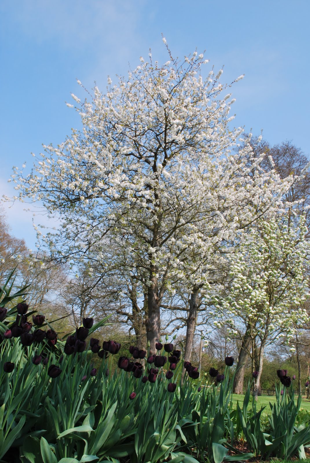 Blossoming trees and 'Queen of the Night' Tulips – a particularly breathtaking combination.