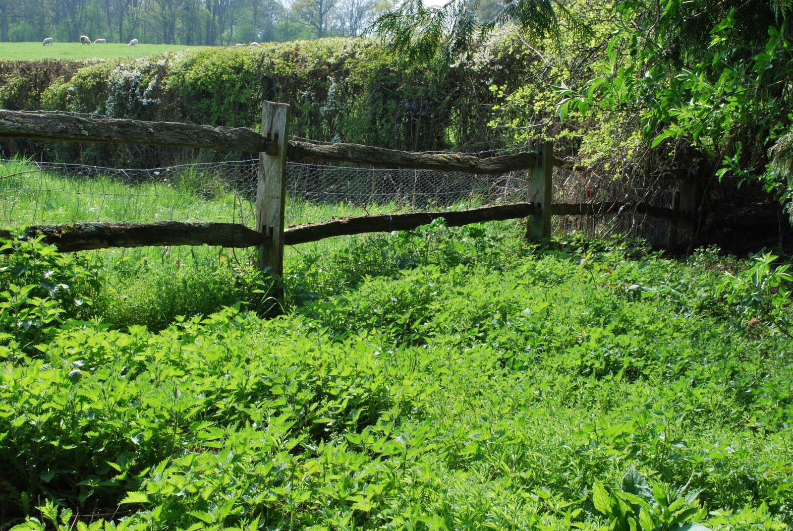 And finally, no flowers but the green in this shot just makes me want to rub my face in it.  Ill advised as that would be – in the foreground is stinging nettle and goosegrass.  Margaret’s new lambs and mothers are feeding in the far field.