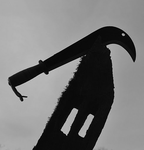 I was quite pleased with the effect but then realised that actually it is far too apocalyptic. The billhook looks like a weapon that a Viking warrior has just whacked into a wooden post whilst he takes a breather from all that rape, pillage and slaughter.