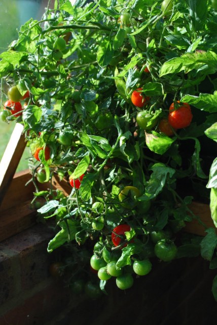 That little charmer, Tumbling Red, is a star performer and I can’t resist necking the small, sweet and warm cherry tomatoes at any given opportunity.