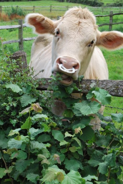 I had no idea cows were so brazen on the milk front, though knew they could be a menace to hedges. Cute though, and if they make good eating…