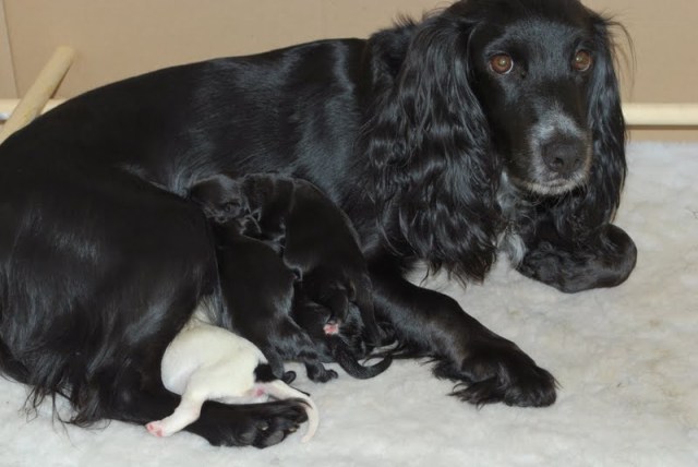 The night before last, from 10pm till 2am, Margaret attended as Poppy (her real name) gave birth. She was two days early and labour was a long protracted affair with the last puppy being breached.