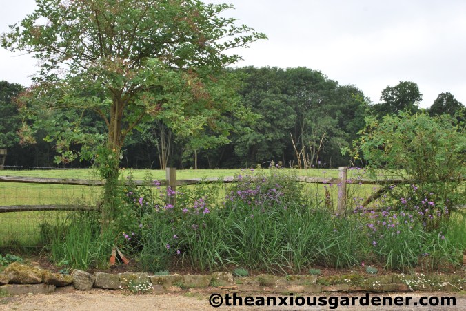 They are just beginning to throw out their flower heads. Just to pad out the grasses until they get a little more established, I’ve also put in eight or so Verbena bonariensis. I know, I know already. I use a LOT of this plant. But … it’s readily available, it’s free (it self seeds brazenly), I’ve got a lot of space to fill and I love it. I promise you that as the garden gets more established, I will cut back on the VB. I can do it. Anytime, I want to. I don’t NEED it. Just say no to VB. No probs. Anytime I want. I’ll just quit. Just not yet ….. but soon*.