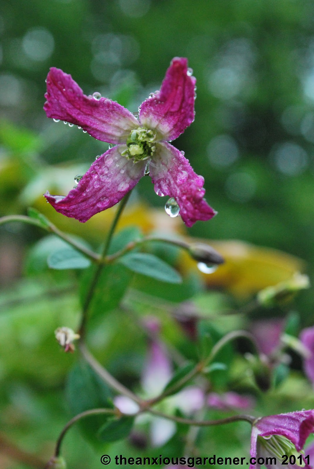 And unlike many clematis, it smells wonderful. Even a rain shower won’t diminish a beautiful, strong, almond scent.