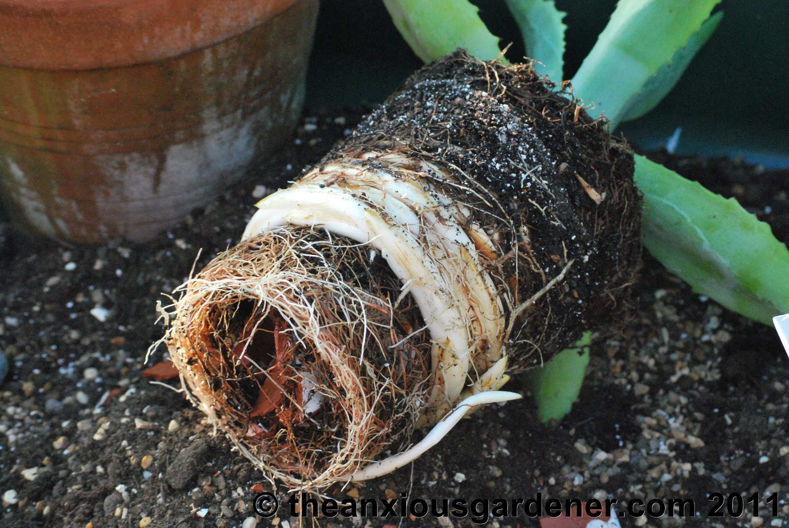 So happy to see your root bound Agave – makes me feel that I am not the only one who sometimes forgets to pot-on quickly enough … I am always saying sorry to my plants!