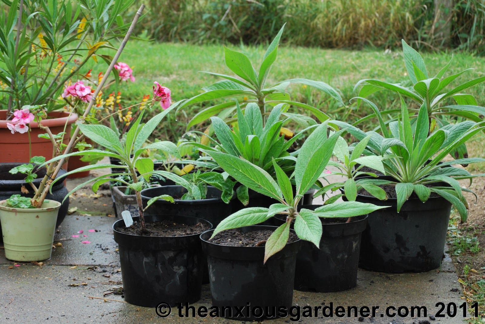 I just saw your post about echiums. I have grown them several times up here in Anglesey but always overwintered them in unheated greenhouse. Some people have managed to leave them in the ground, they do better but not last winter! I have found that unless you get them on the move quite quickly in their 2nd spring they hang on for another year which makes for a problem getting them through the door! They need to be kept fairly moist through the winter otherwise they shed their lower leaves and finish up looking like a scruffy palm. Yours look a little small to flower next year. Good luck