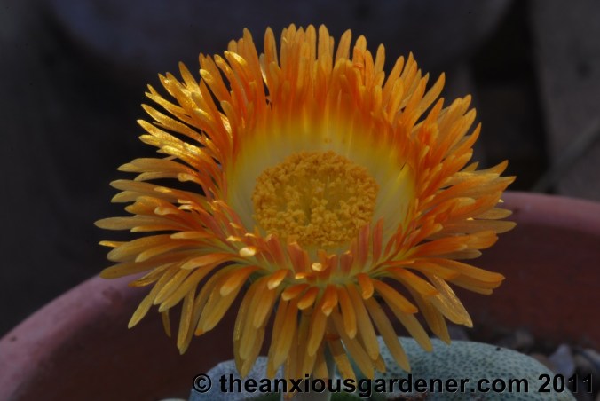 I also have one of these, but mine has not rewarded me with a bloom. Amazing color, great photographs!