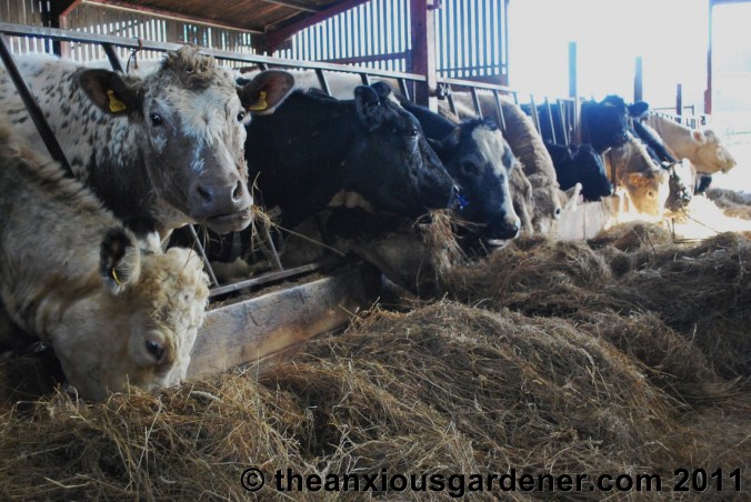 All the cattle will remain in the sheds now until the ground is firm and the grass starts growing again. It’s a huge amount of work for Margaret as they obviously need to be fed, watered and cleaned out. That many cows, bulls and calves produce a vast amount of manure. But, hey! A vast amount of manure is a good thing. There are an awful lot of Priory roses.