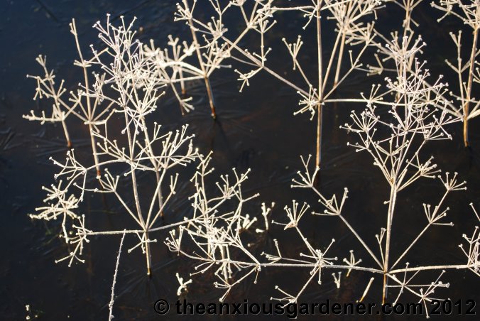 In the ditch between the two ponds, these frozen (insert name of plant here – as I haven’t got a clue) are ethereal and strangely beautiful.