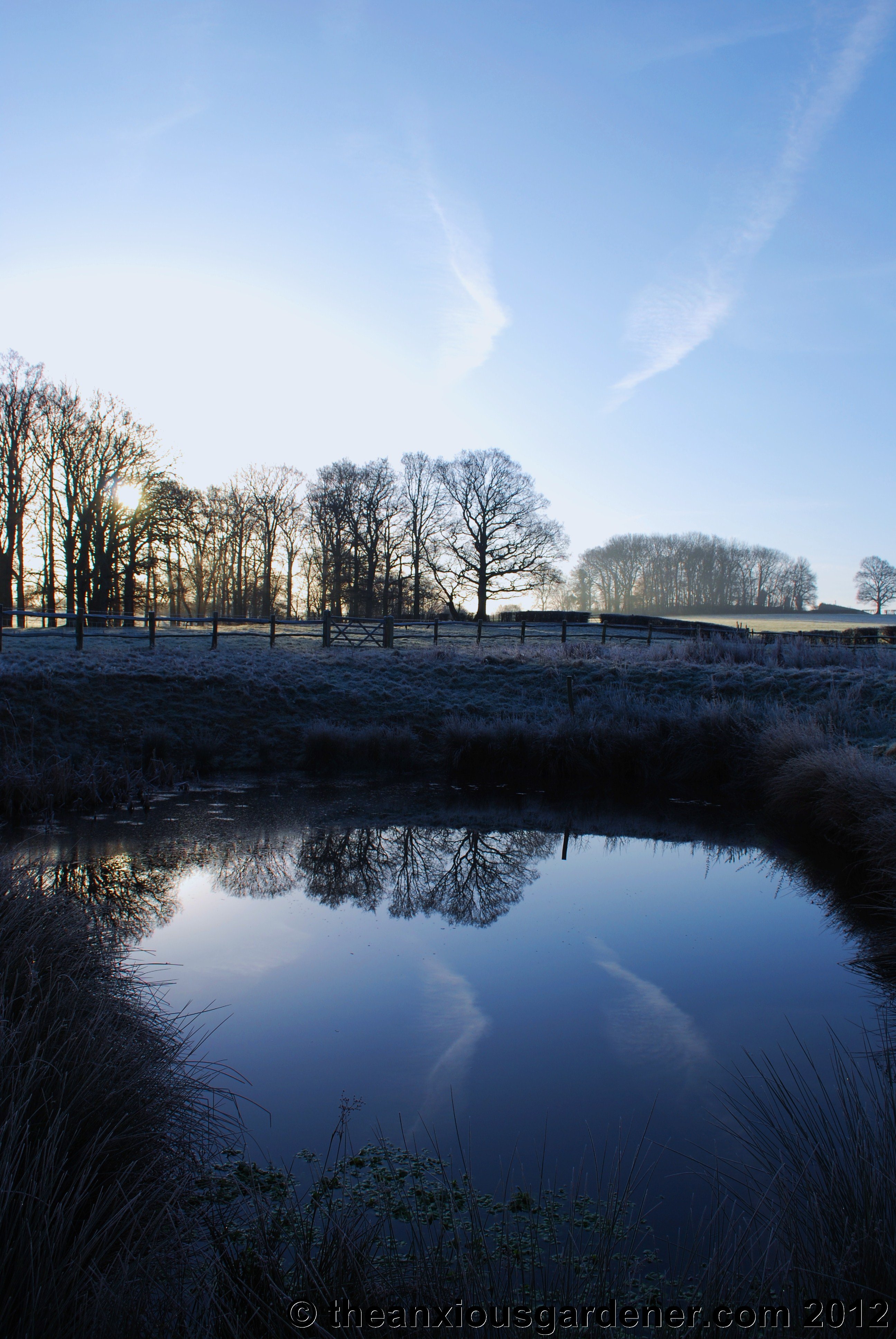 Such beautiful photographs Dave, and I am so envious of you having had that crunchy walk – still no crunchiness here, just mild wet greyness, which isn’t nearly as photogenic. Or satisfying underfoot. I love the idea of you washing the trunks of all the trees at the Priory! And the reed mace looks wonderful, all frosted up like that. The moorhens – and you – have excellent taste.