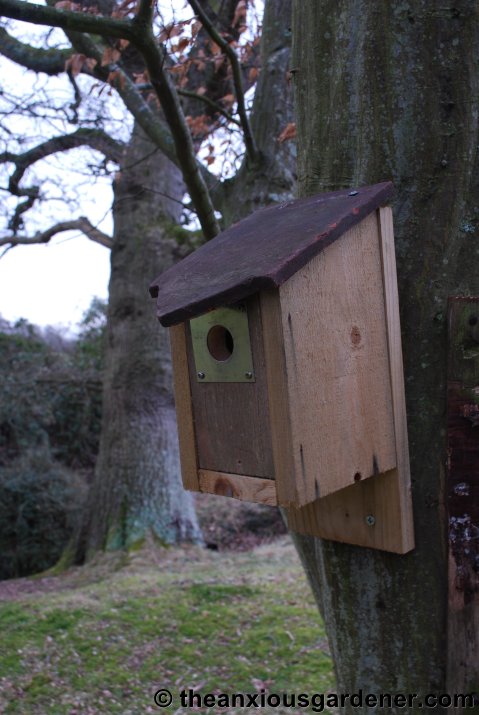 Of the nine tit boxes, six were used last year and the other three had evidence of roosting (feathers and droppings).  I moved one of the unused ones as it was badly sited and I’m hoping for a better take up rate this year.  The robin box still hasn’t been used.  Humpf.