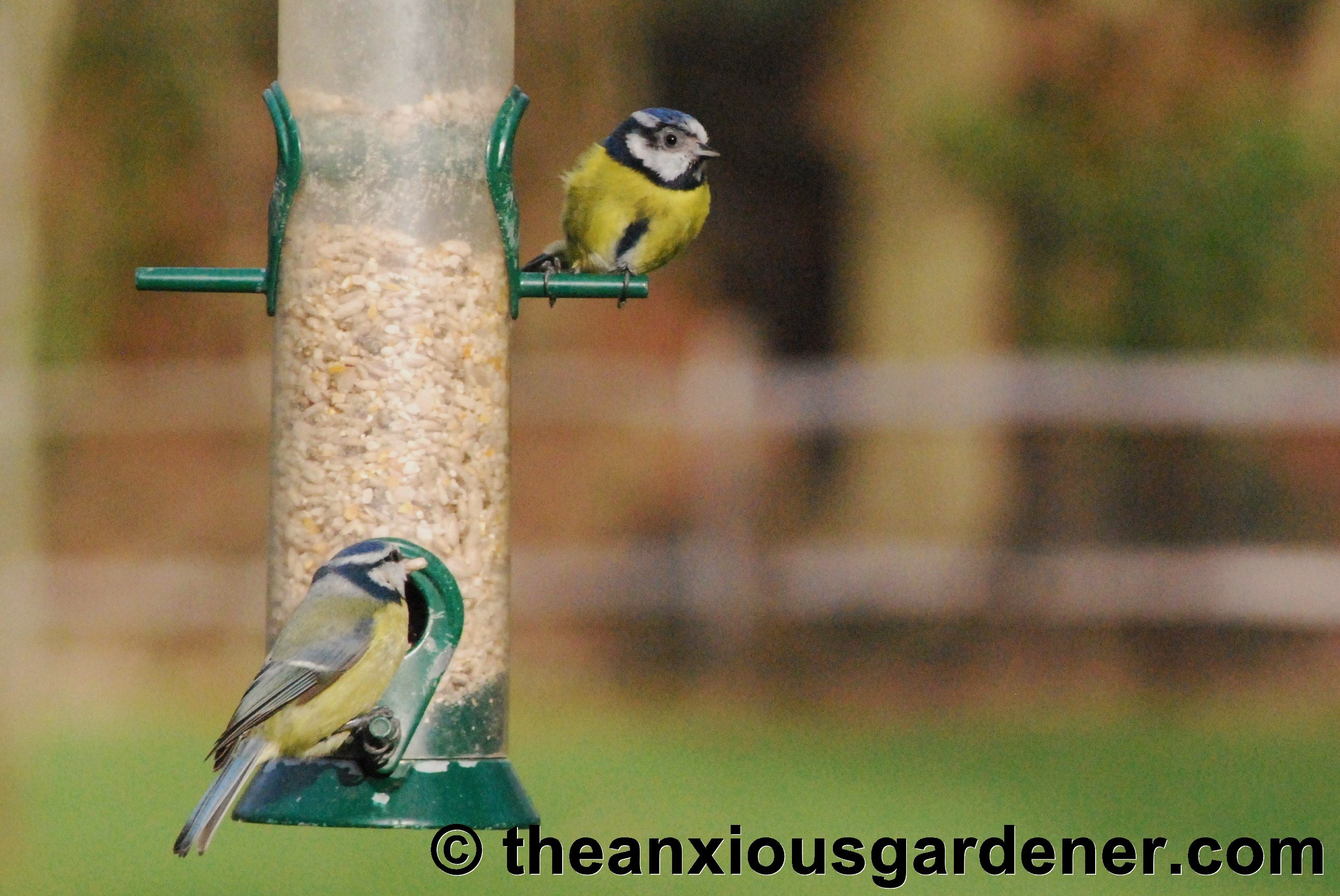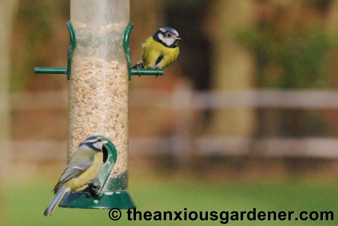 • Hi Suzy, I wonder whether the baldness on the first tit’s face won’t spread further – some kind of mange? Perhaps your baldy regrew its feathers (lets be optimistic, eh?). Hehe – and gratifying that you fell for my little joke!