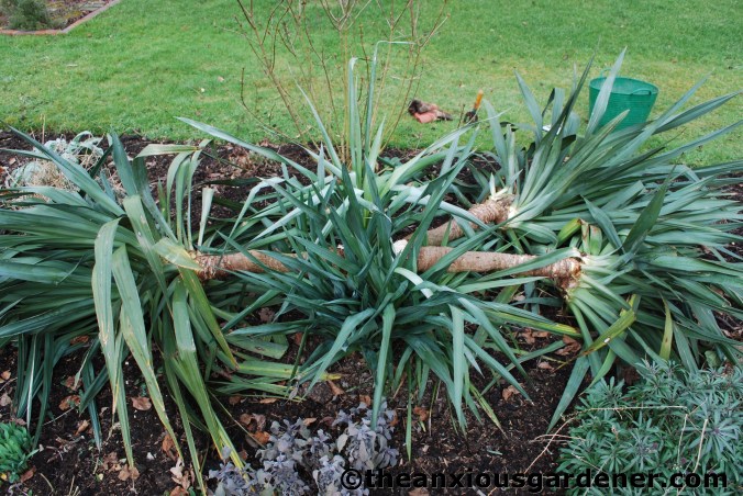 One of two venerable yuccas in the long borders. I'm not overly fond of them but it was still sad to lose three stout stems to the weight of snow.