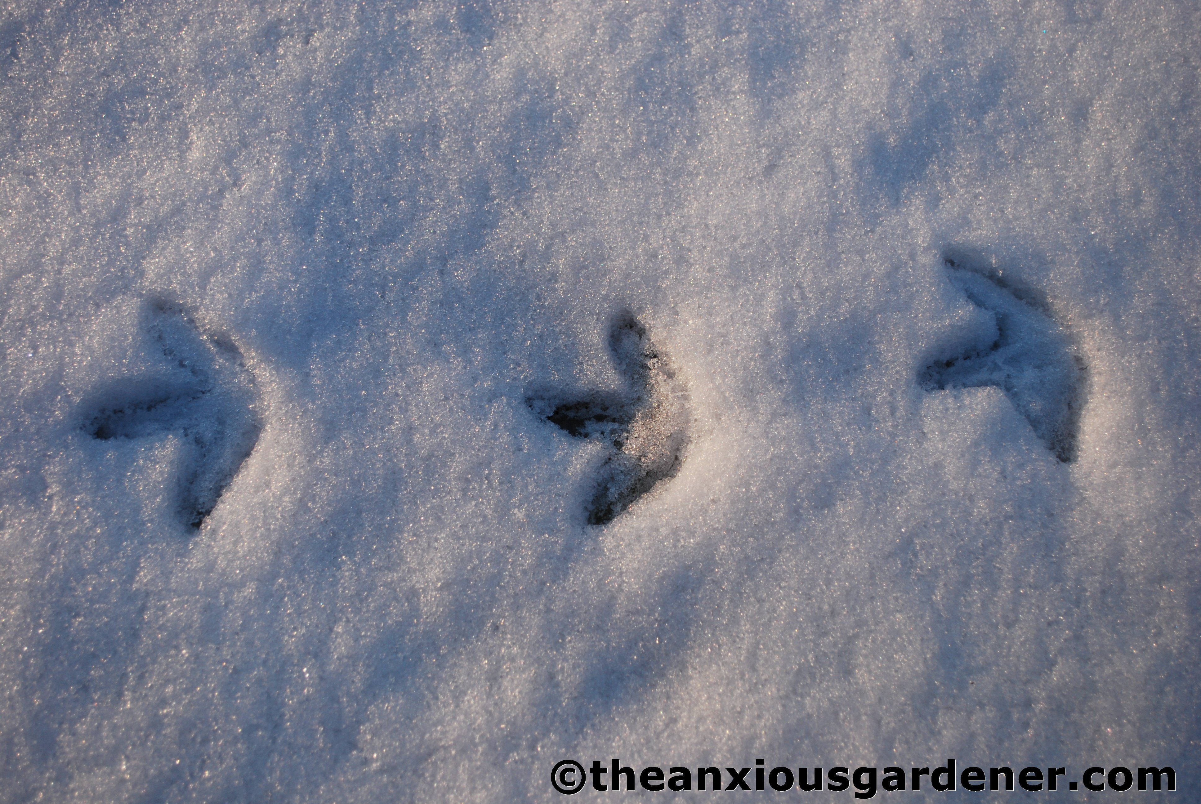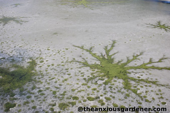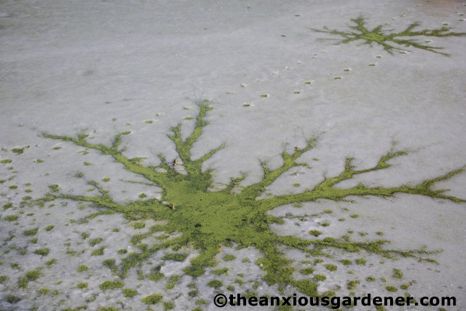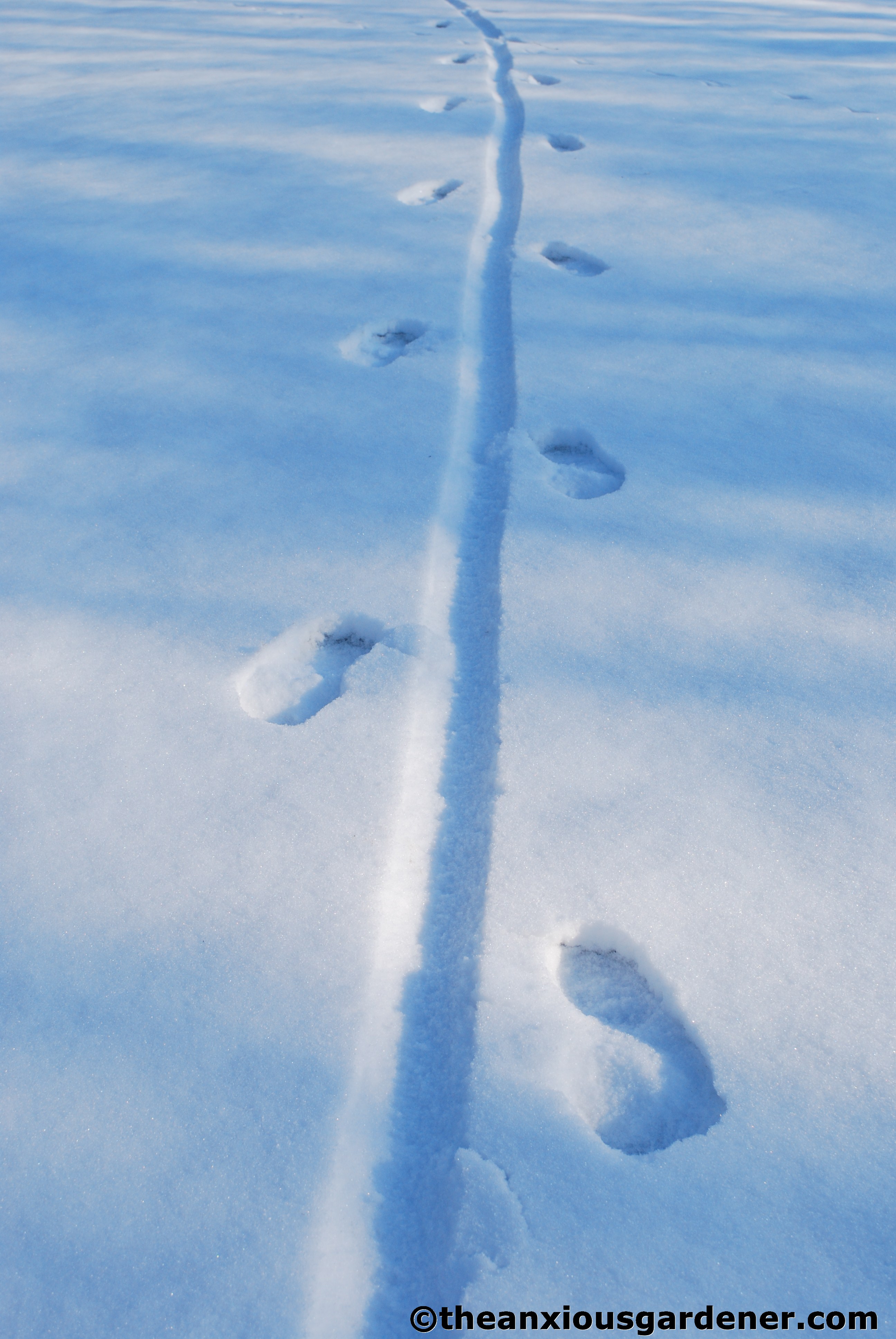 An interesting side-effect of the gleaming stuff is to show me who’s been visiting the garden. Though it’s not always readily apparent what made which tracks: