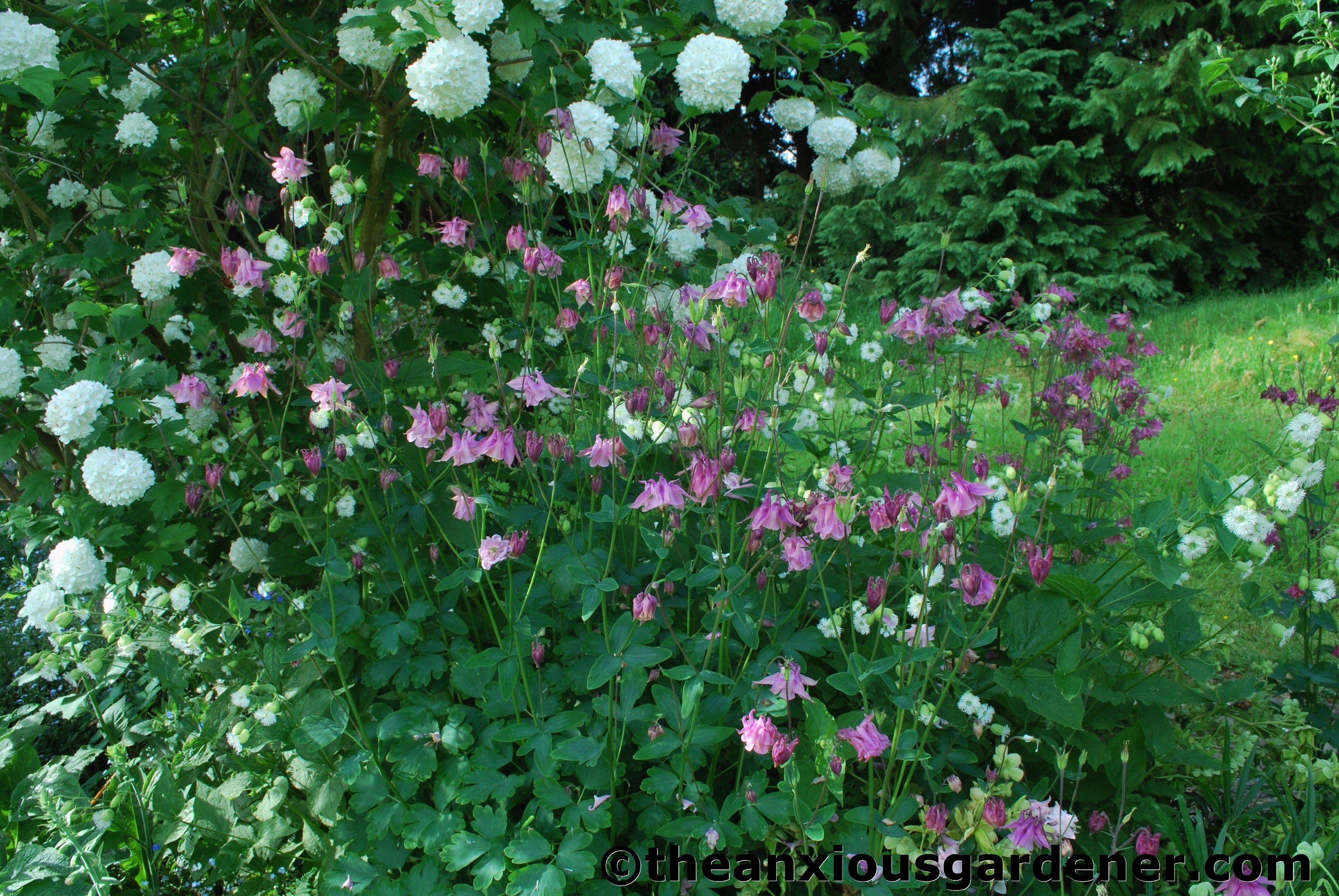 … aquilegias and silene all a-jumble. Foxgloves will join the mix soon.