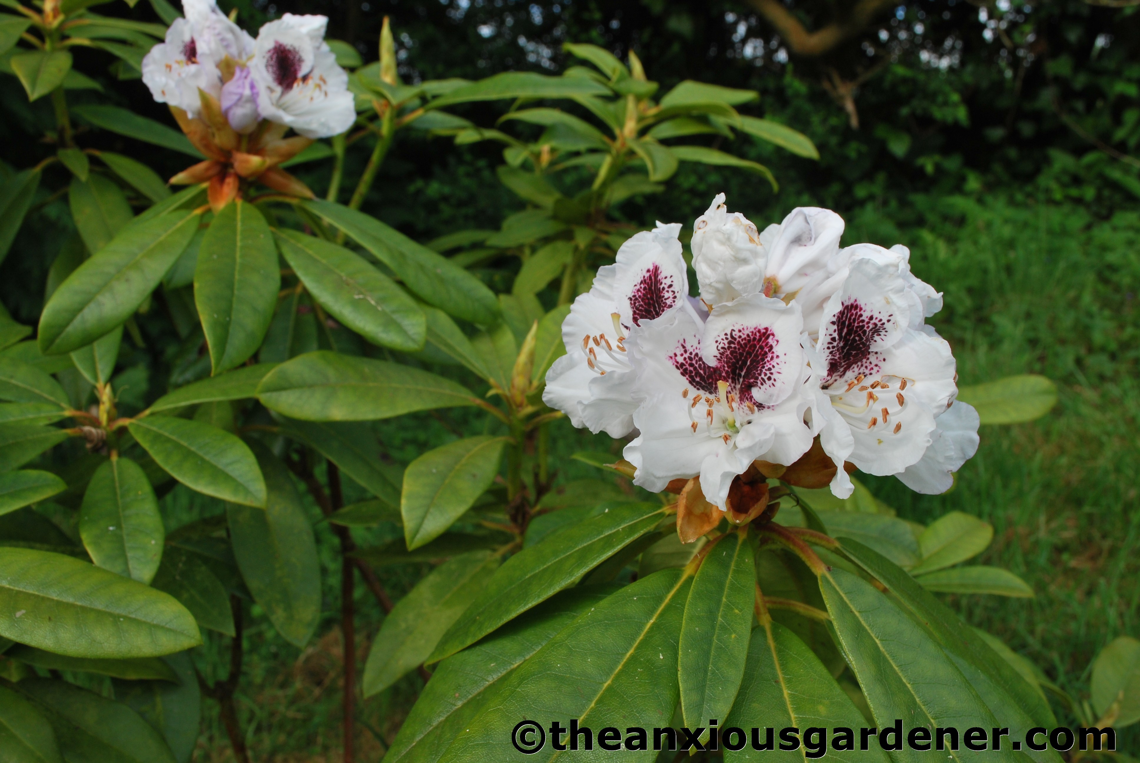 Because there was already a large bank of rhododendrons, I swallowed a bitter, lifelong aversion to the things and planted four more of them. I’ve become a bit of a convert (as I have with so many plants which I used to dislike) and particularly wanted (and hunted down) the above: R. ‘Sappho’.