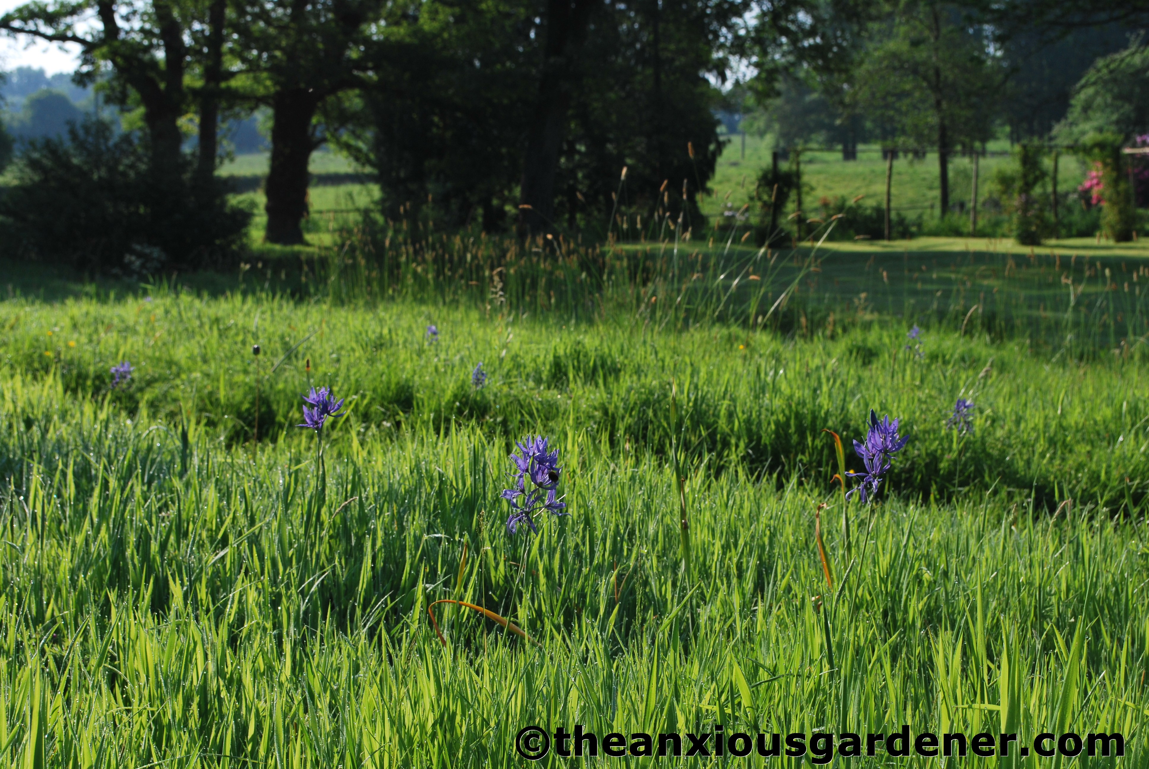 Out on the meadow, the 200 Camassia quamash – which I planted in autumn 2010 – have flowered. Last year there were perhaps a dozen blooms but this year they have begun to make more of an impact in various small patches.