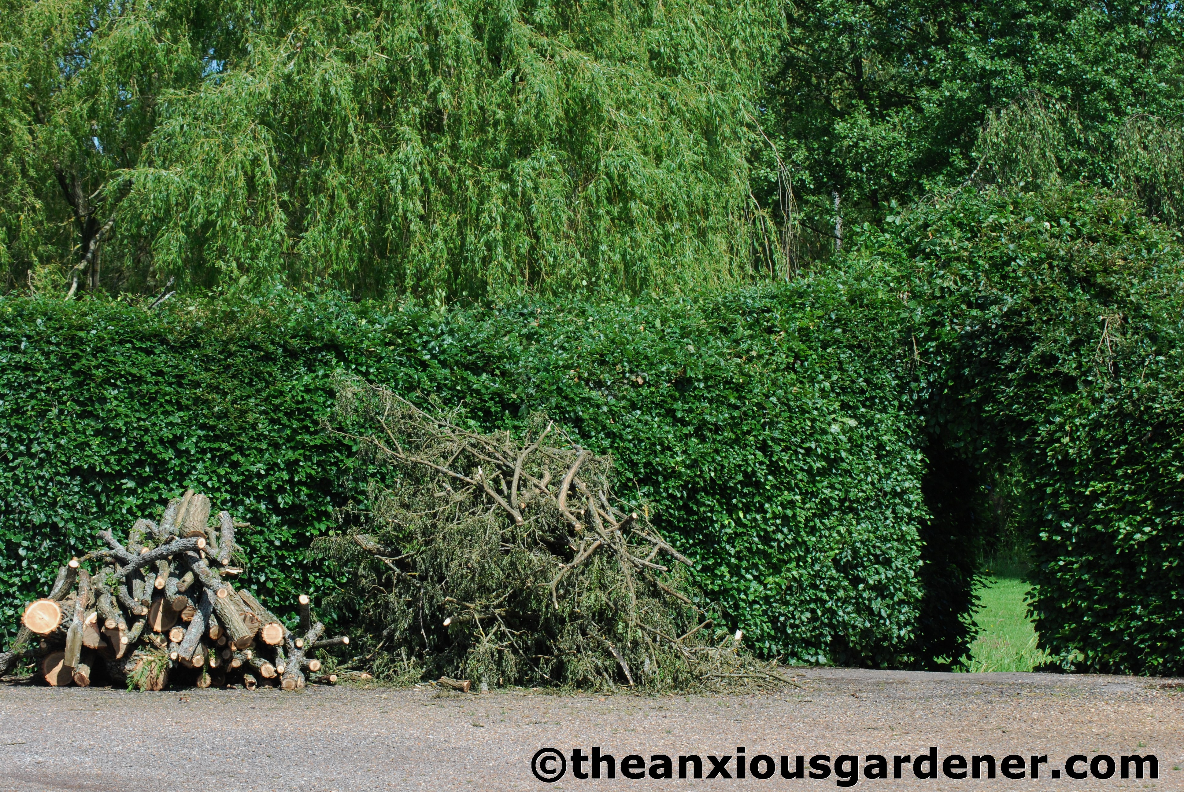 The beech hedge was surprisingly OK; a little crumpled and the beech arch a little dented. And Nick earned himself a gold star by sawing and tidying up.