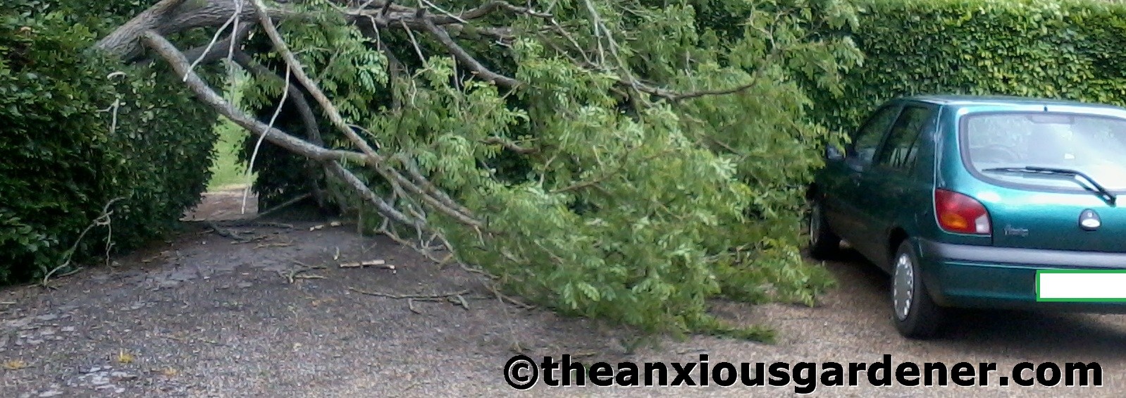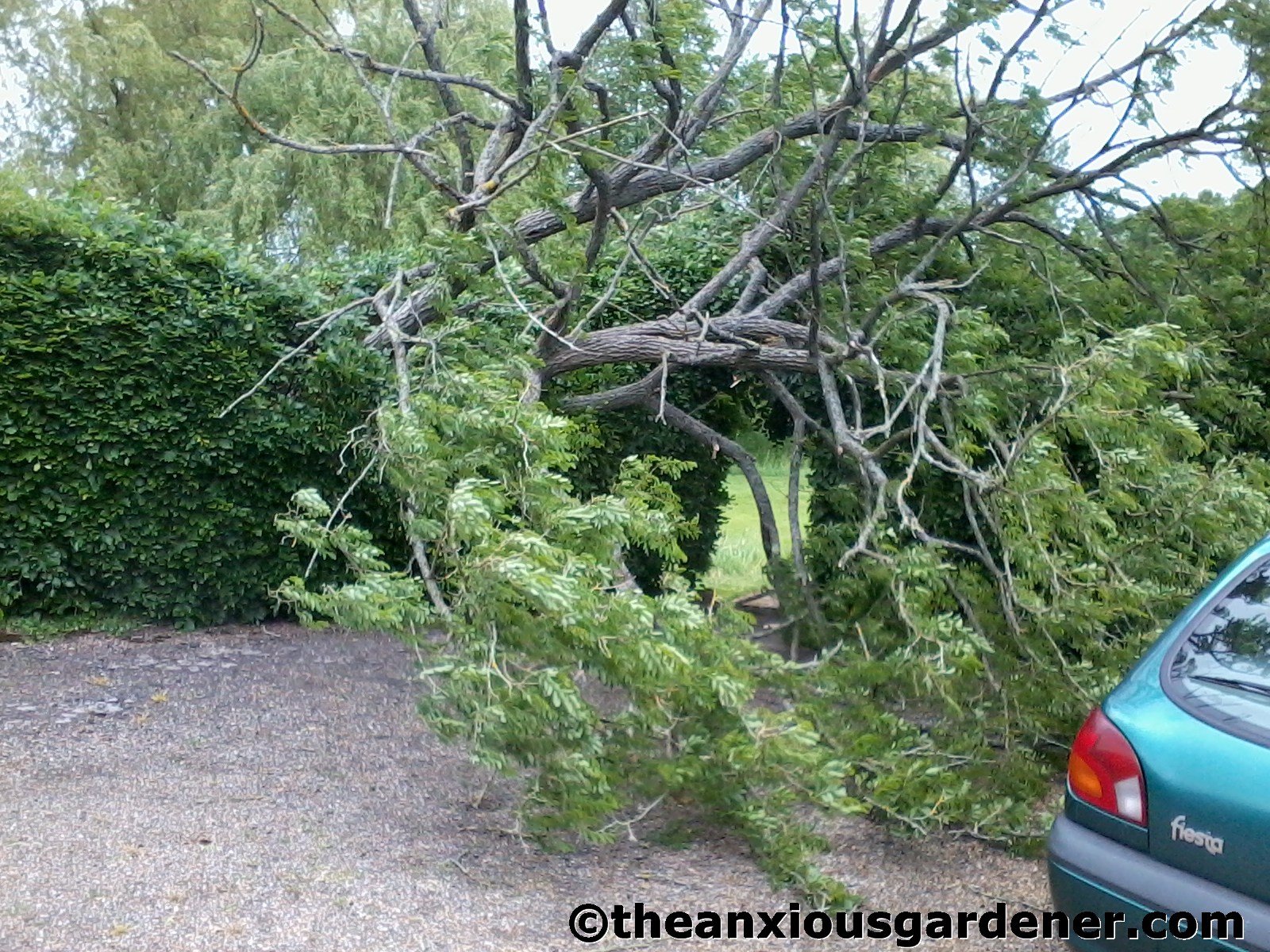 Heavens, that was lucky that nobody was underneath it! Amazing that the hedge still looks so good and lucky you, having colleagues to cut it all up for you!
