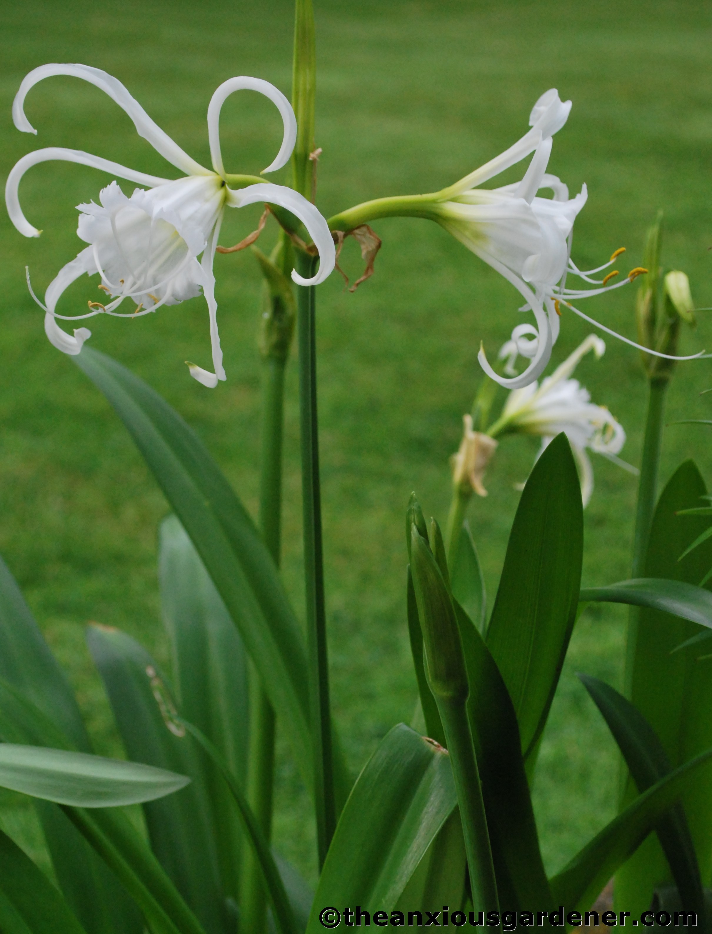 And finally, another plant which I haven’t grown before (put in a pot to protect it from slug-dom); the exotic looking Peruvian Daffodil, the Spider Lily or Ismene (Hymenocallis x festalis). Rather lovely, don’t you think?