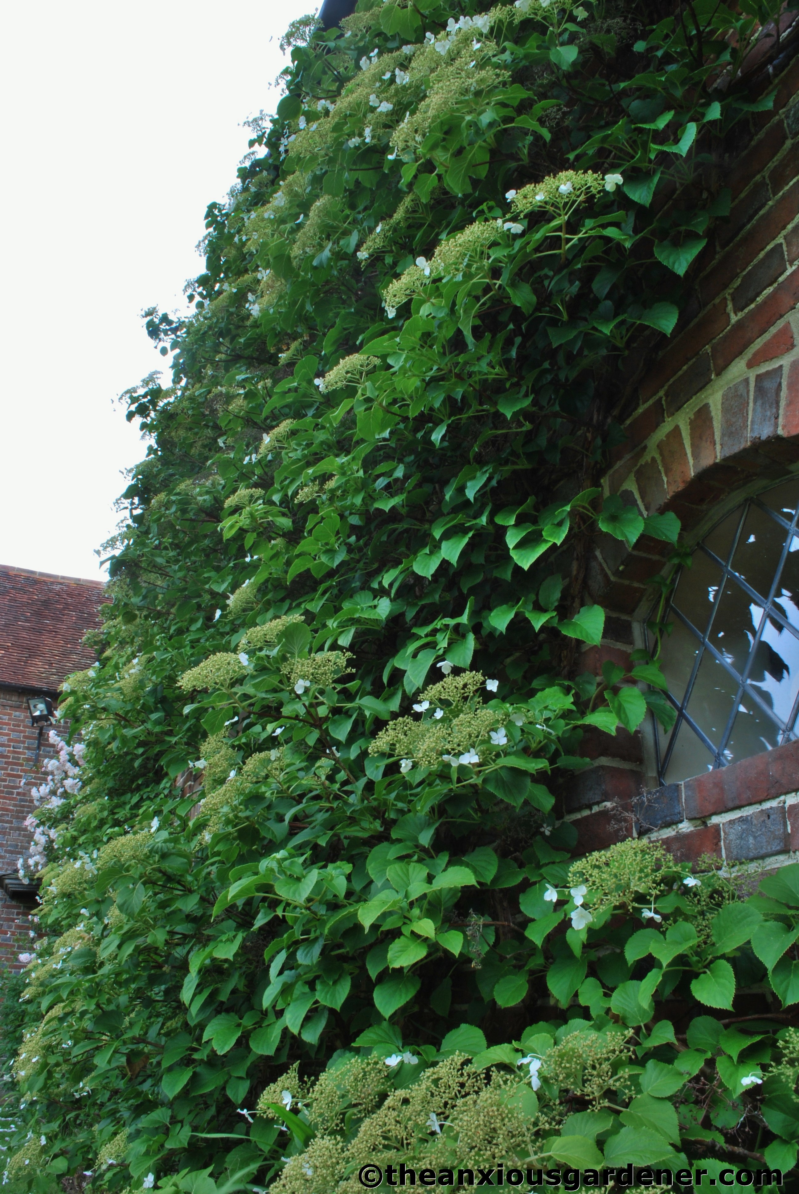 Hi Bridget, the hydrangea on the house is ancient and as Mr K points out they do grow fast but I would add only when established. I have two young ones at the Priory (and I grew one in my old garden) and I would say that they only put on maybe six inches for each year for their first few years. The young uns at the Priory are about three years old and about four foot high. But I agree with Mr K – there is something wrong with your six year old if it is still only 2 foot high and yes, might it be too dry up against the house wall – least ways while it’s relatively young? D