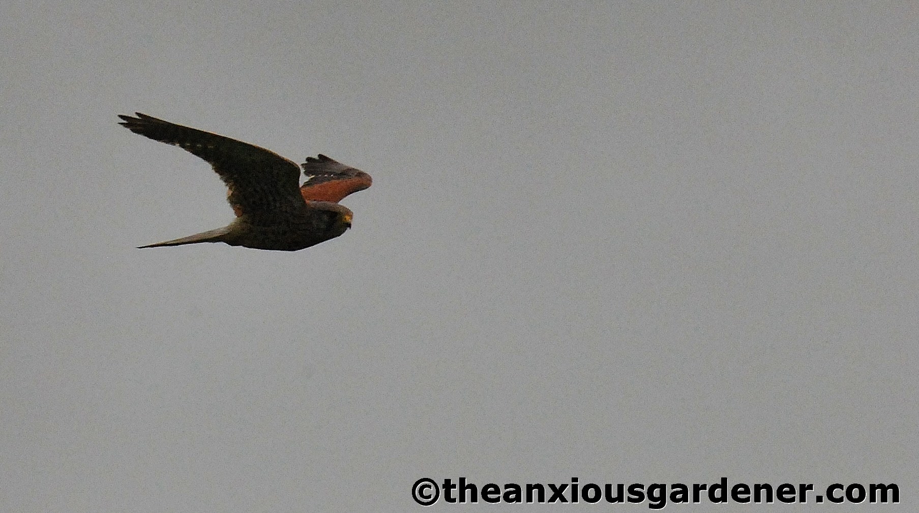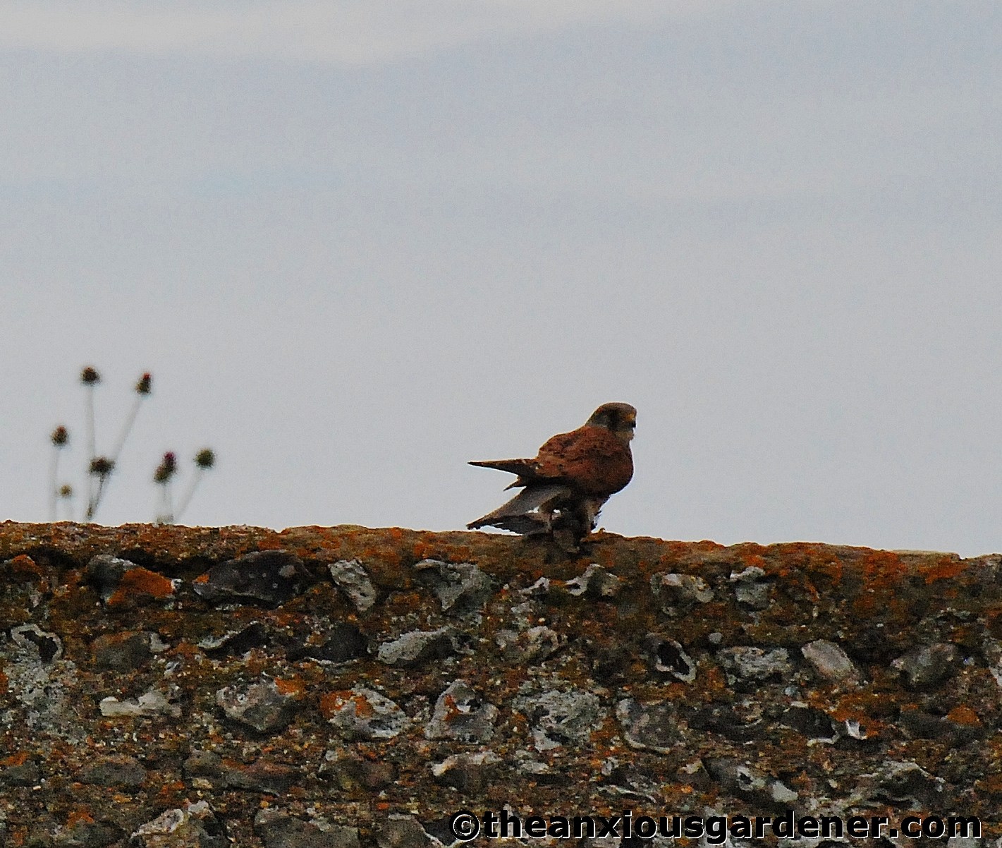 Sadly, rather than its usual prey of small mammals (voles, field mice, shrews and the like), the kestrel’s victim today was a swallow nestling. The male kestrel had found a swallow nest in the out-building at the very top of the gardens.