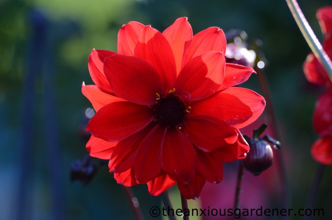 Dahlia ‘Bishop of Llandaff’ adds spots of colour …