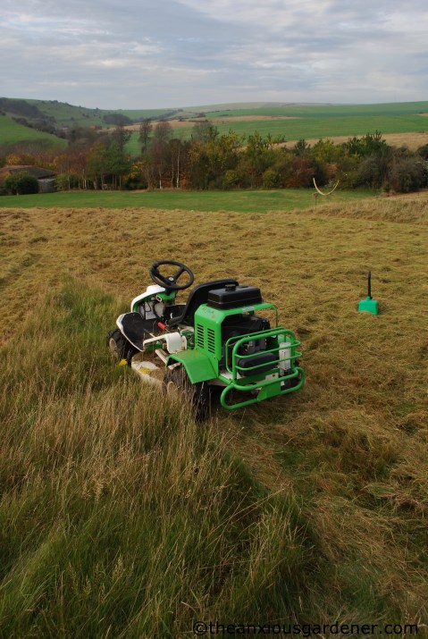 After four years of experimentation with developing a meadow at the Priory, I have found that the best solution to this problem is … (dramatic pregnant pause) … Sam and his Amazing Mowing Machine:
