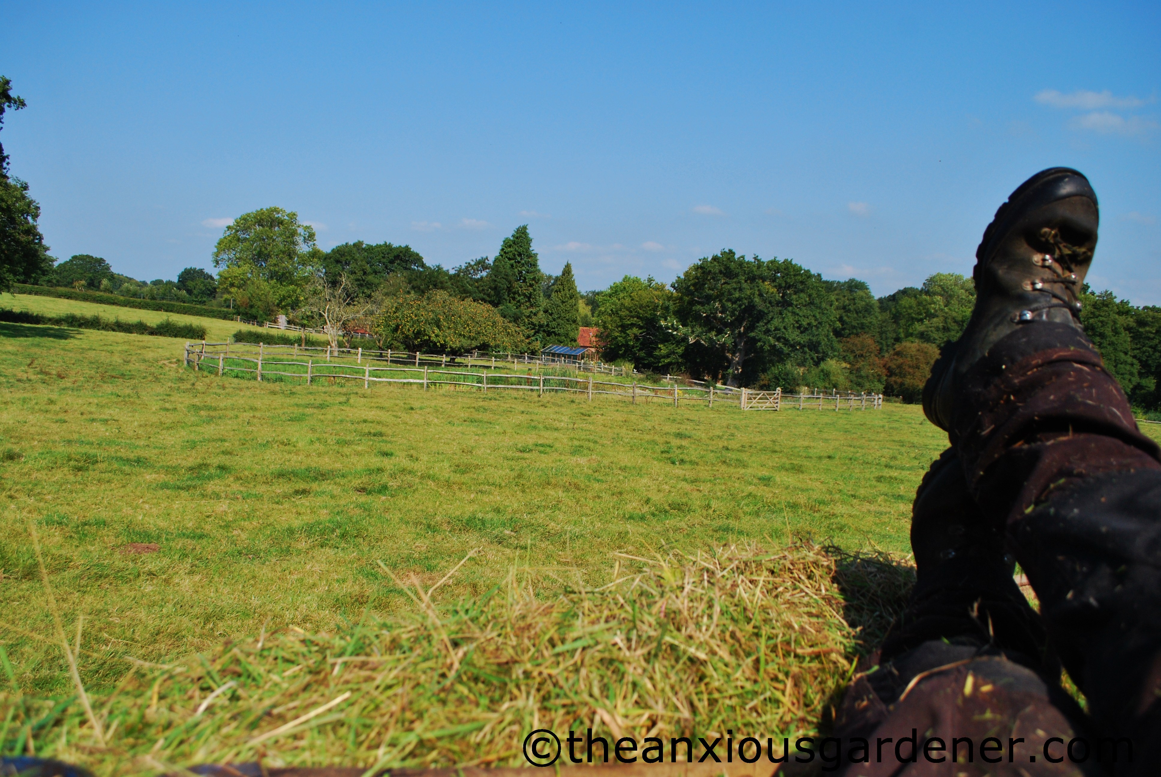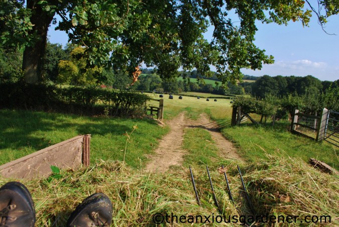 … full, Nick (also borrowed as he can drive a tractor and I can’t) drove up through Margaret’s fields with me perched on top of the hay (as ballast, Nick said).