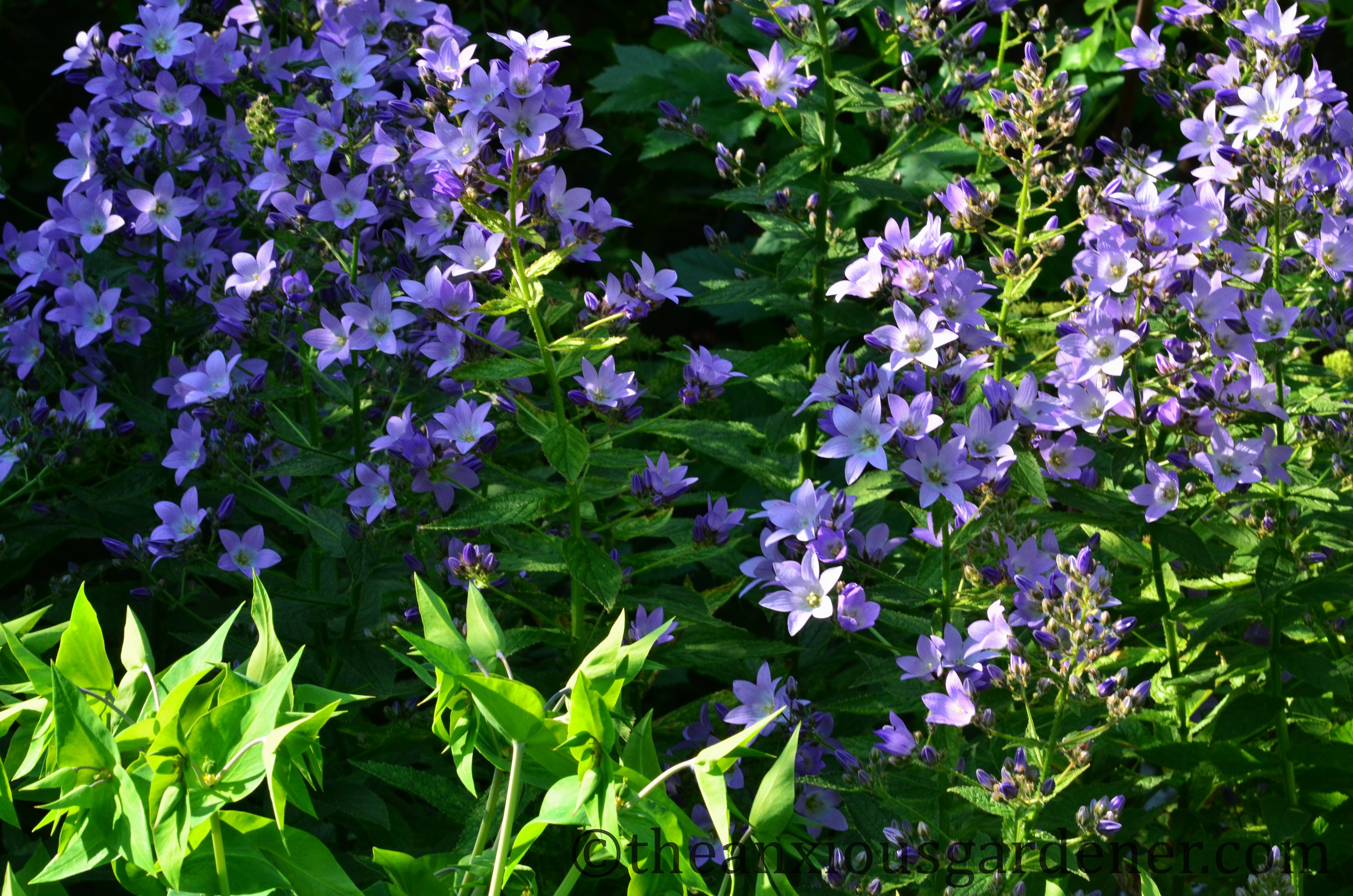 The Campanula lactiflora ‘Pritchard’s Variety’ is over now. I intend splitting this large clump but Mr Kininvie has warned me that this is easily said. I’ll let you know how I get on.