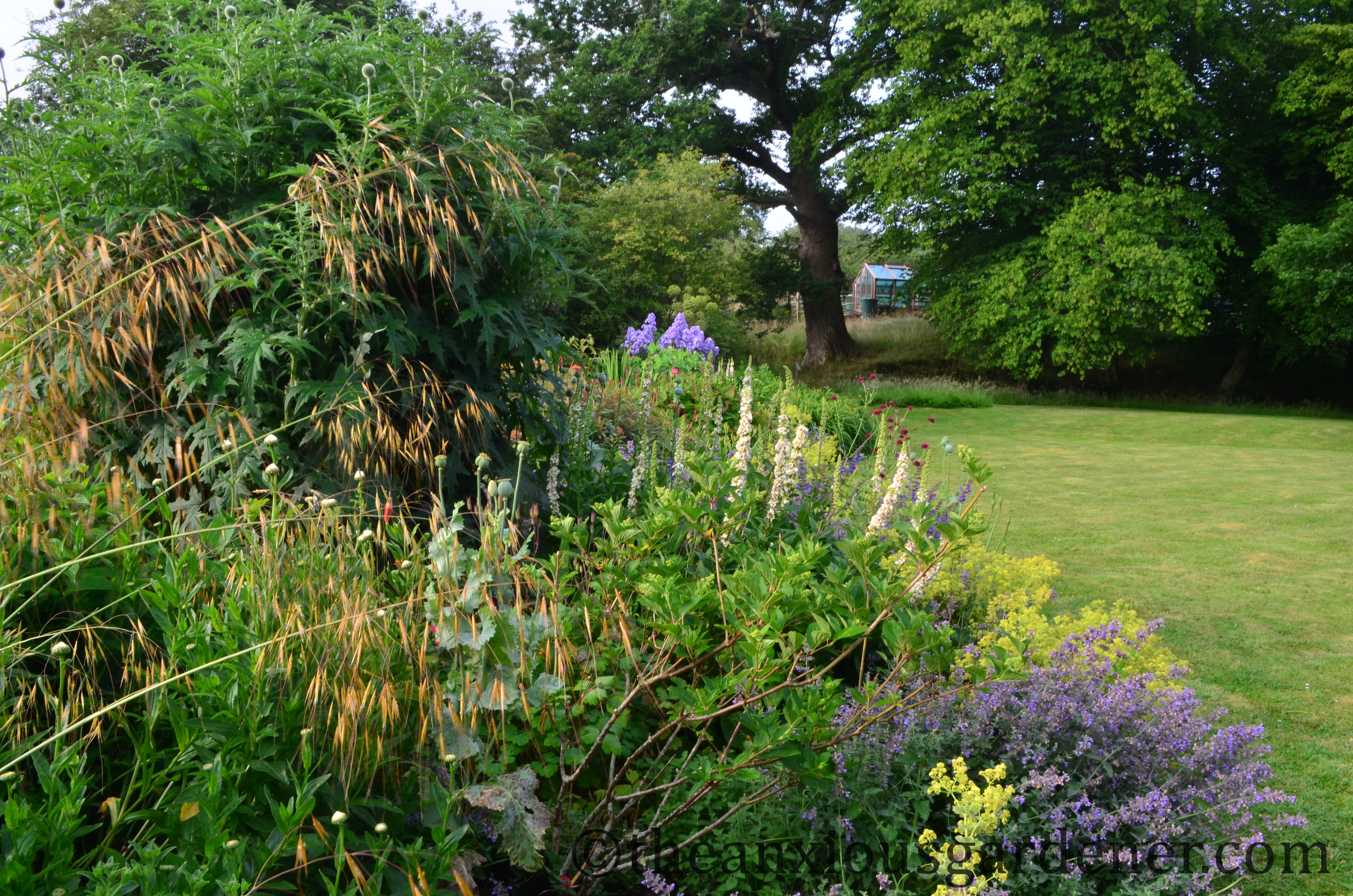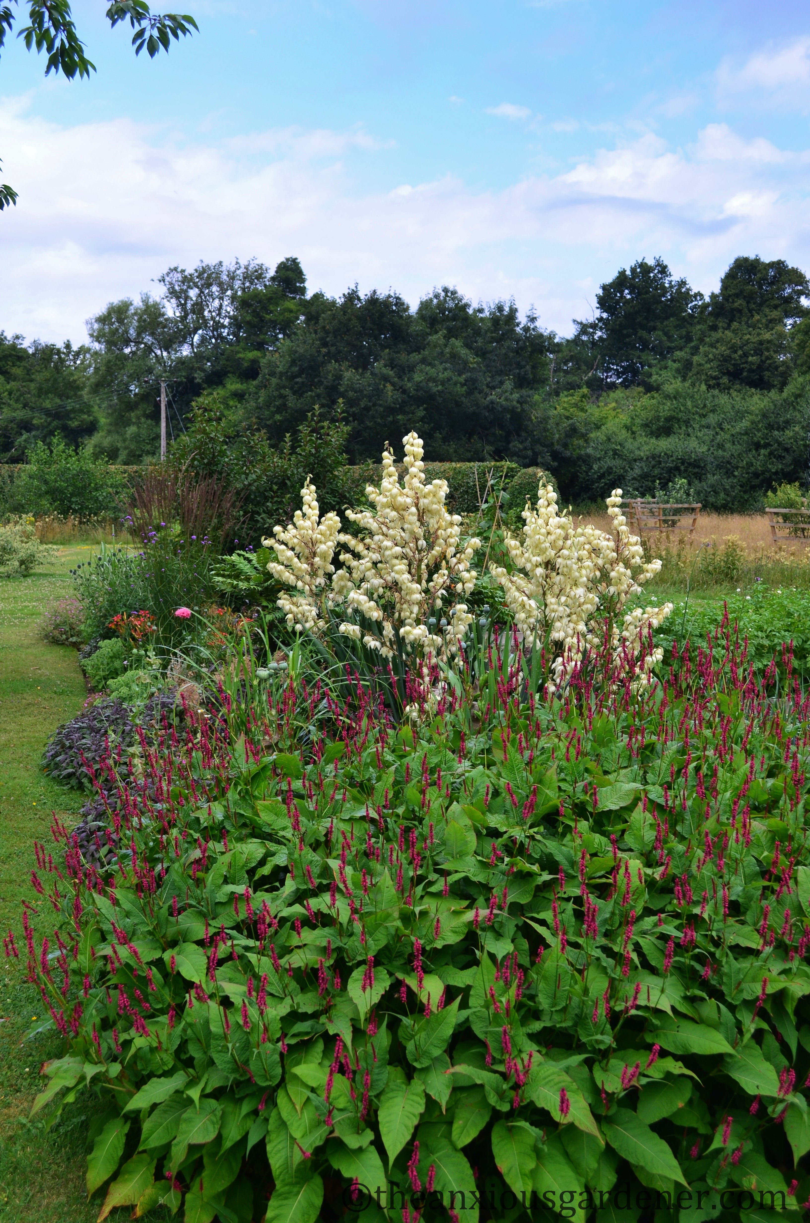 The kidney beds (so-called because of their shape) have been fine this past month or so. Though why I persist with that enormous echinops puzzles even me (centre, left-hand bed).