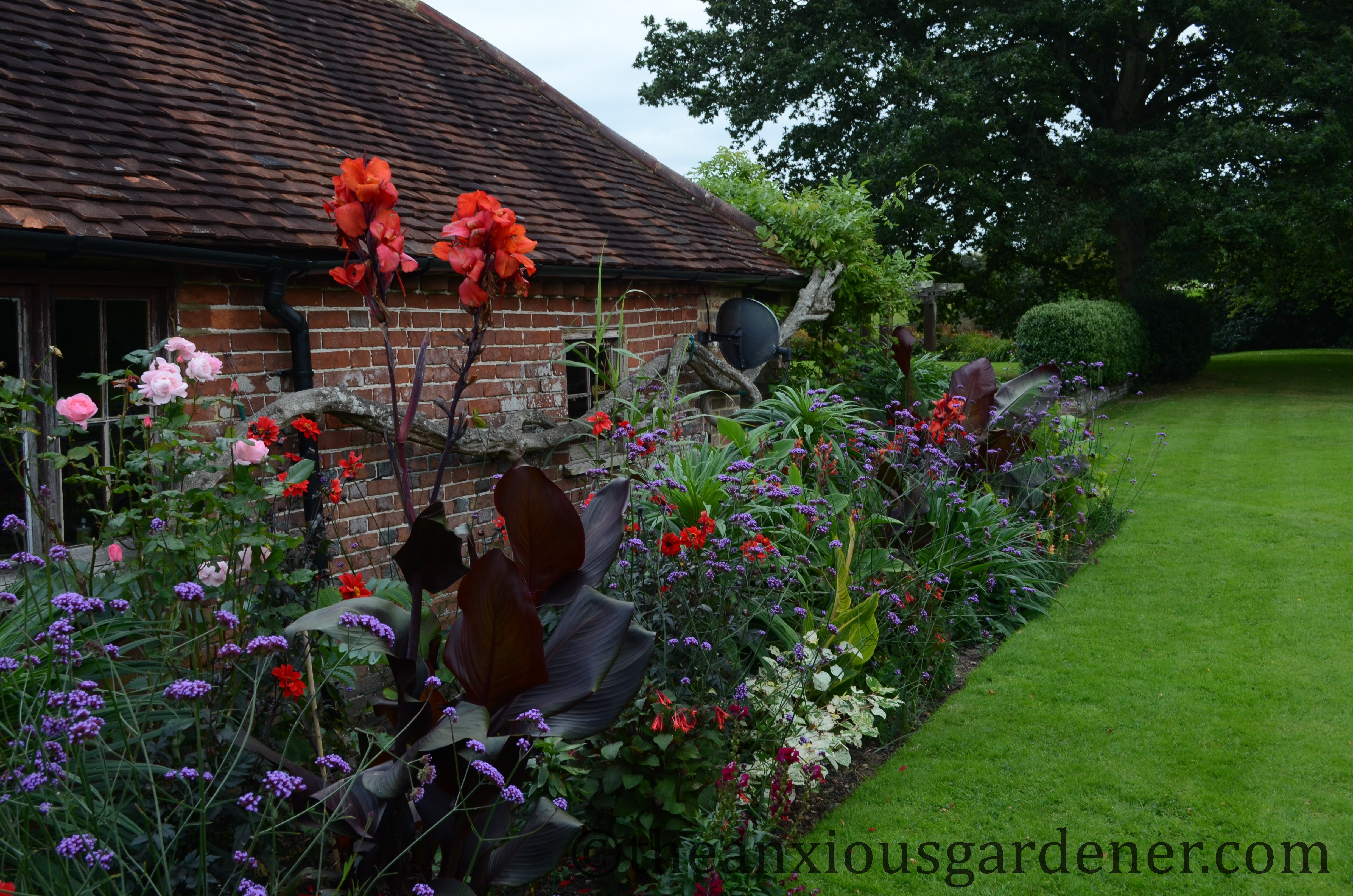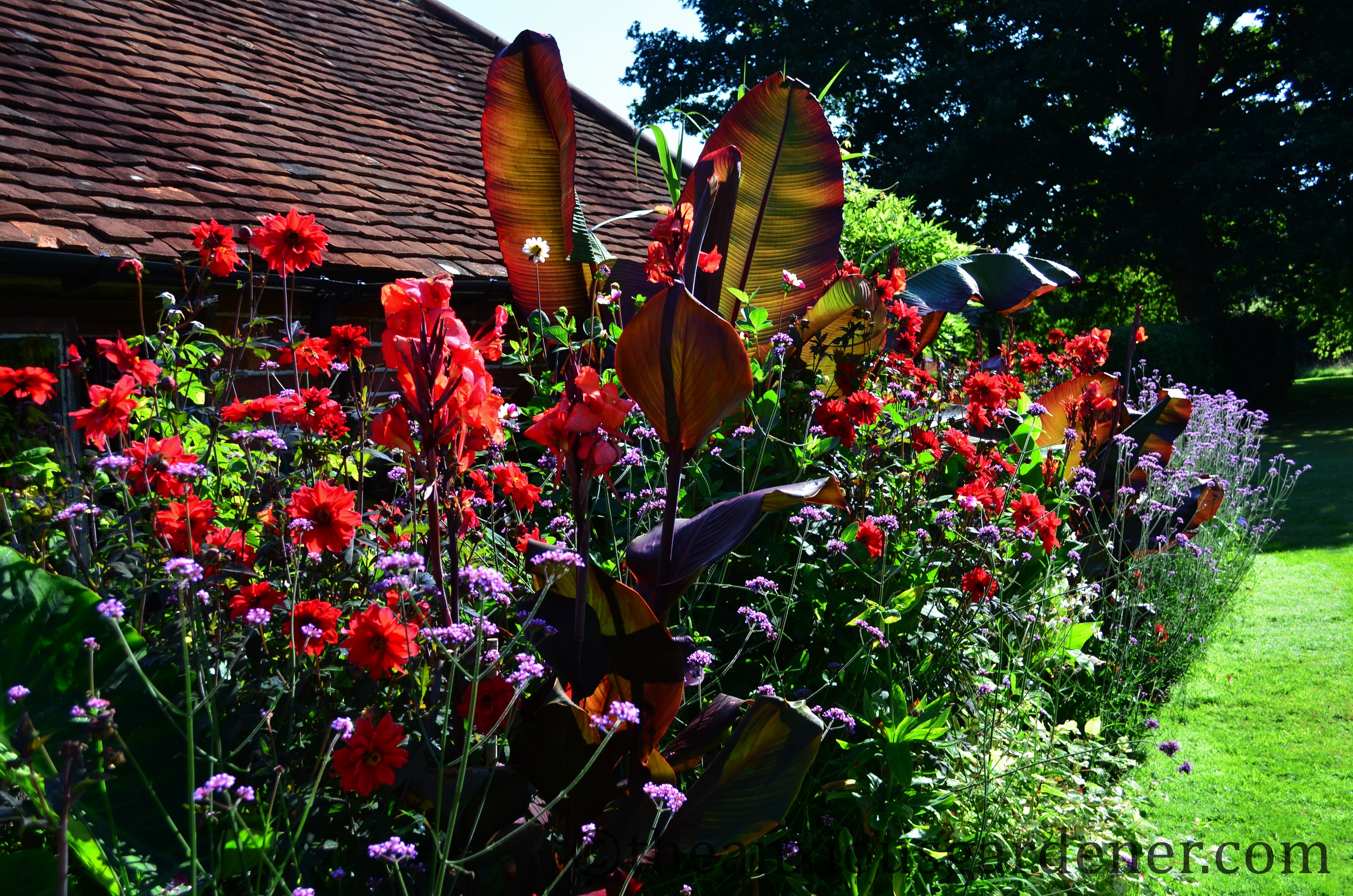 but the tropical border at least is putting on a show. It doesn’t come into its own until quite late in the season and during this hot, dry Sussex summer it has needed almost daily watering.