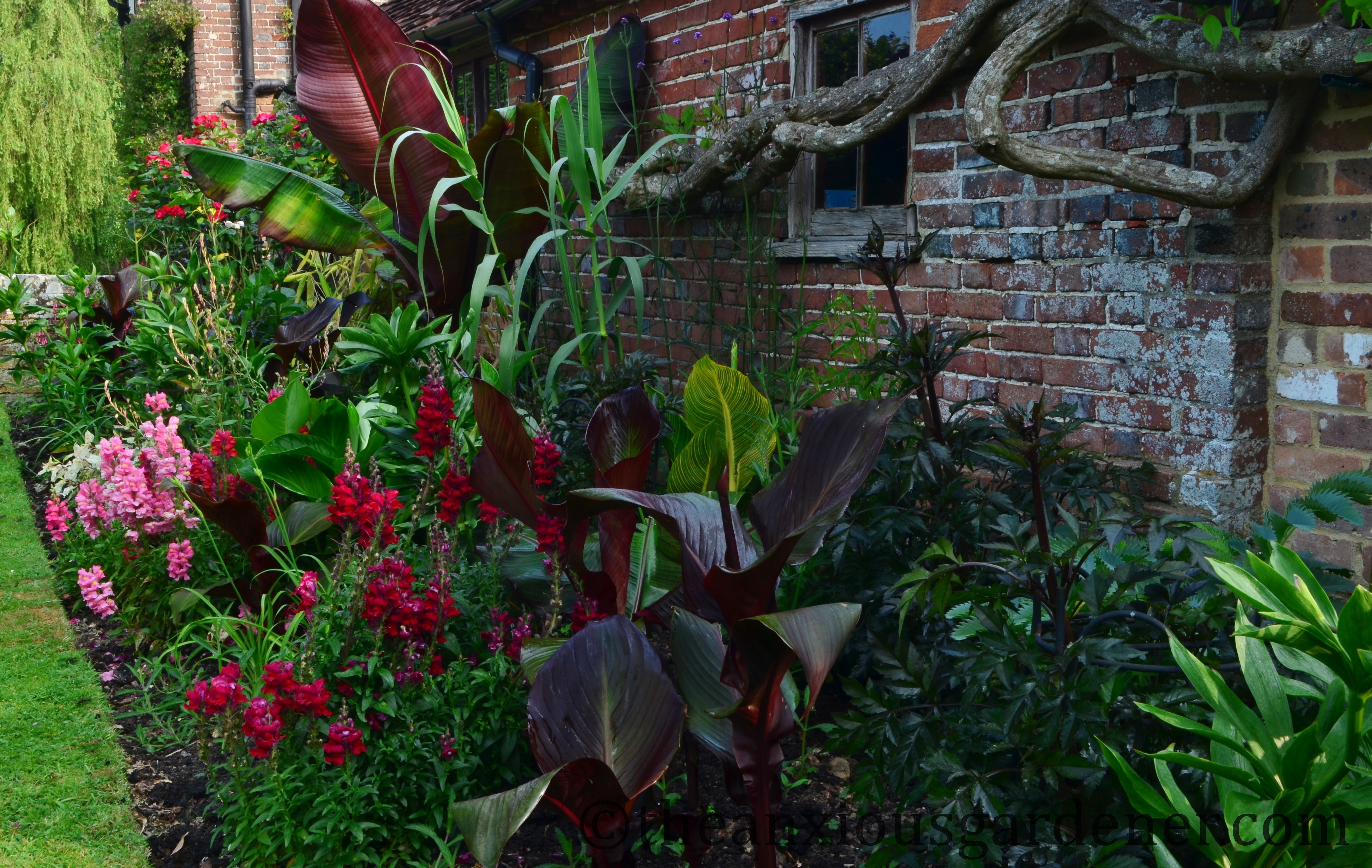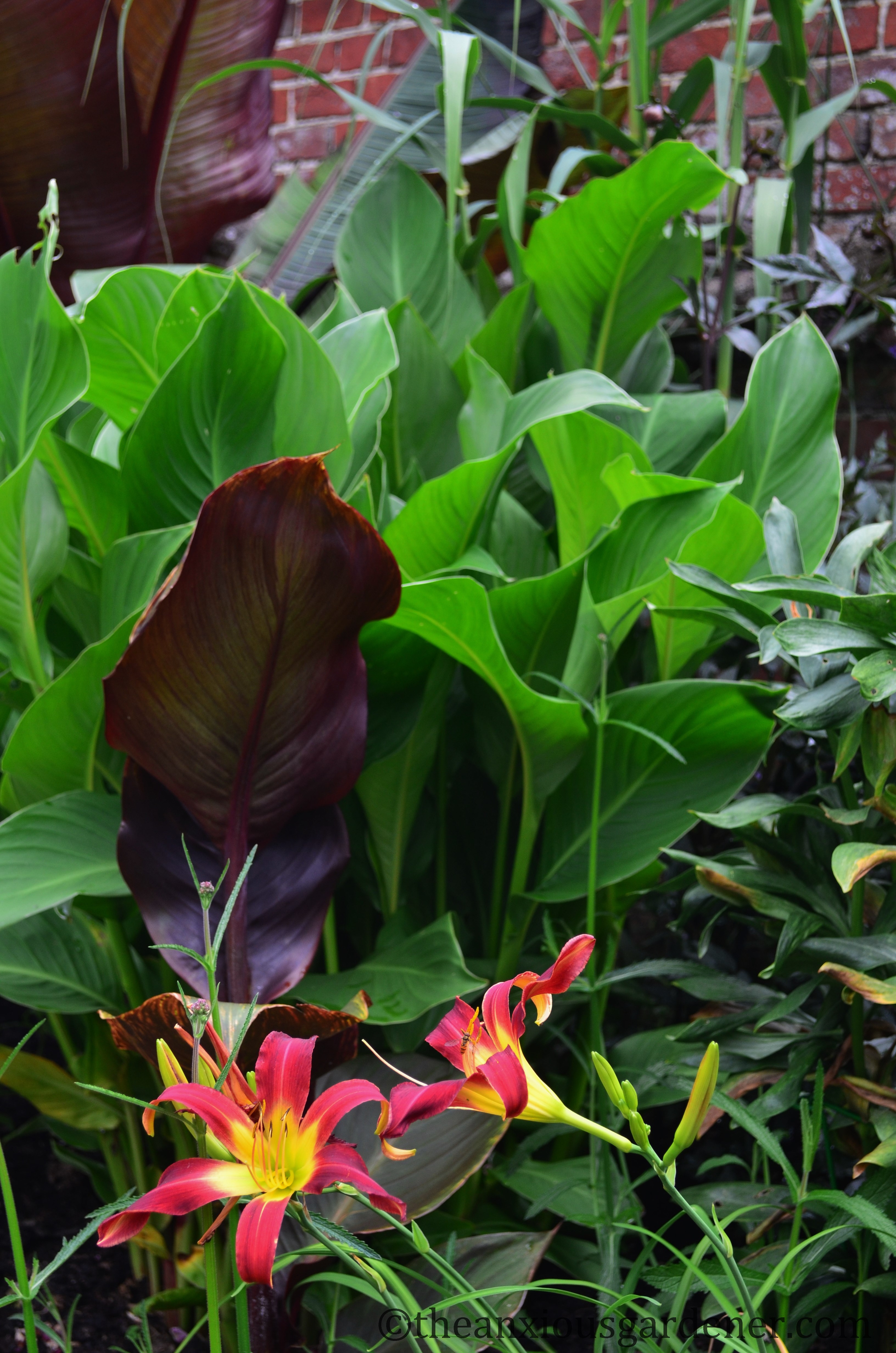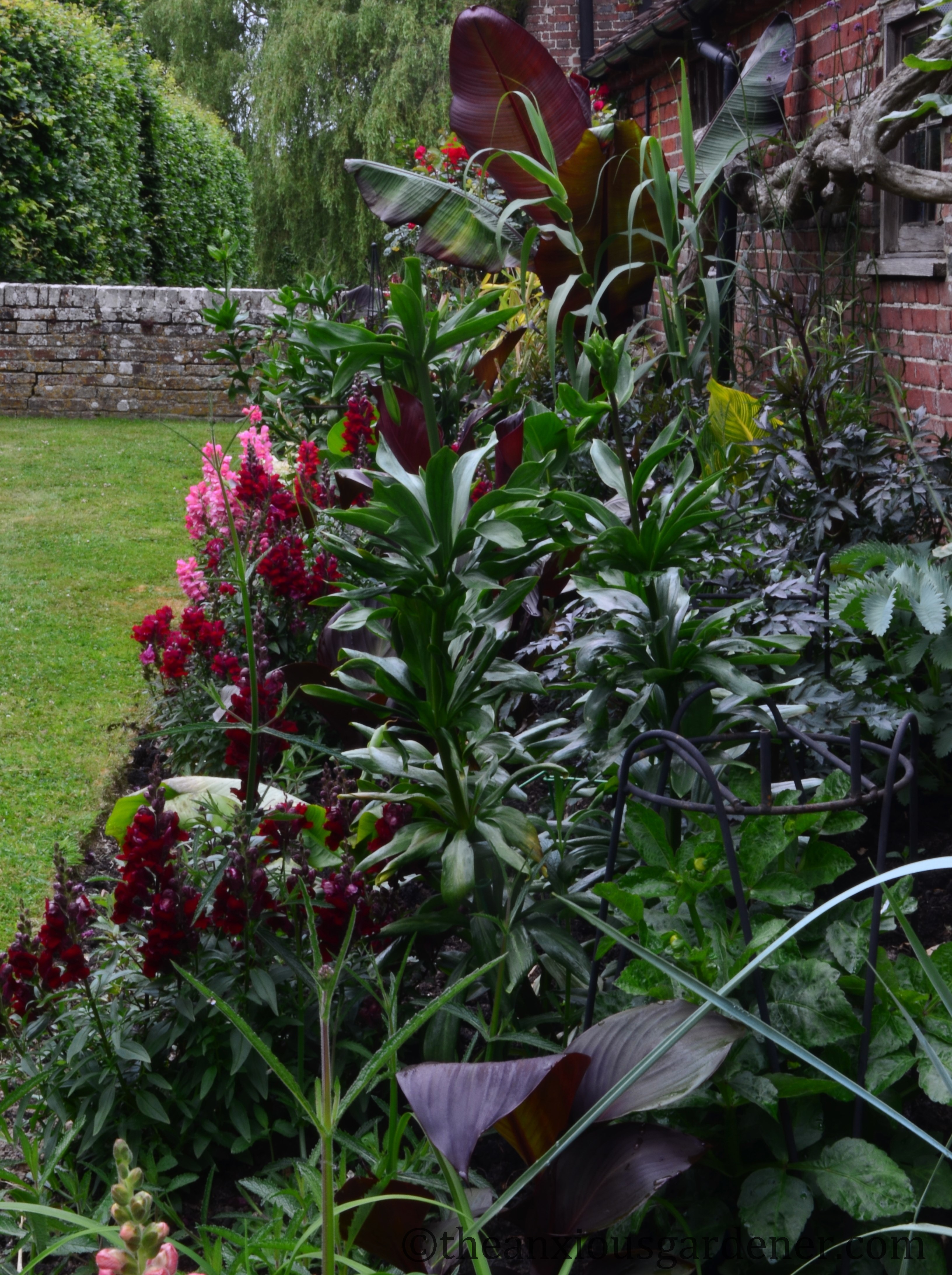 It’s taken me a while to catch up but I’m so pleased to see your photos of the tropical border. It looks stunning. I so love the strong colours against the brick. I love bananas. I acquired one a few years ago but had no greenhouse at the time to overwinter it in and I lost it.
