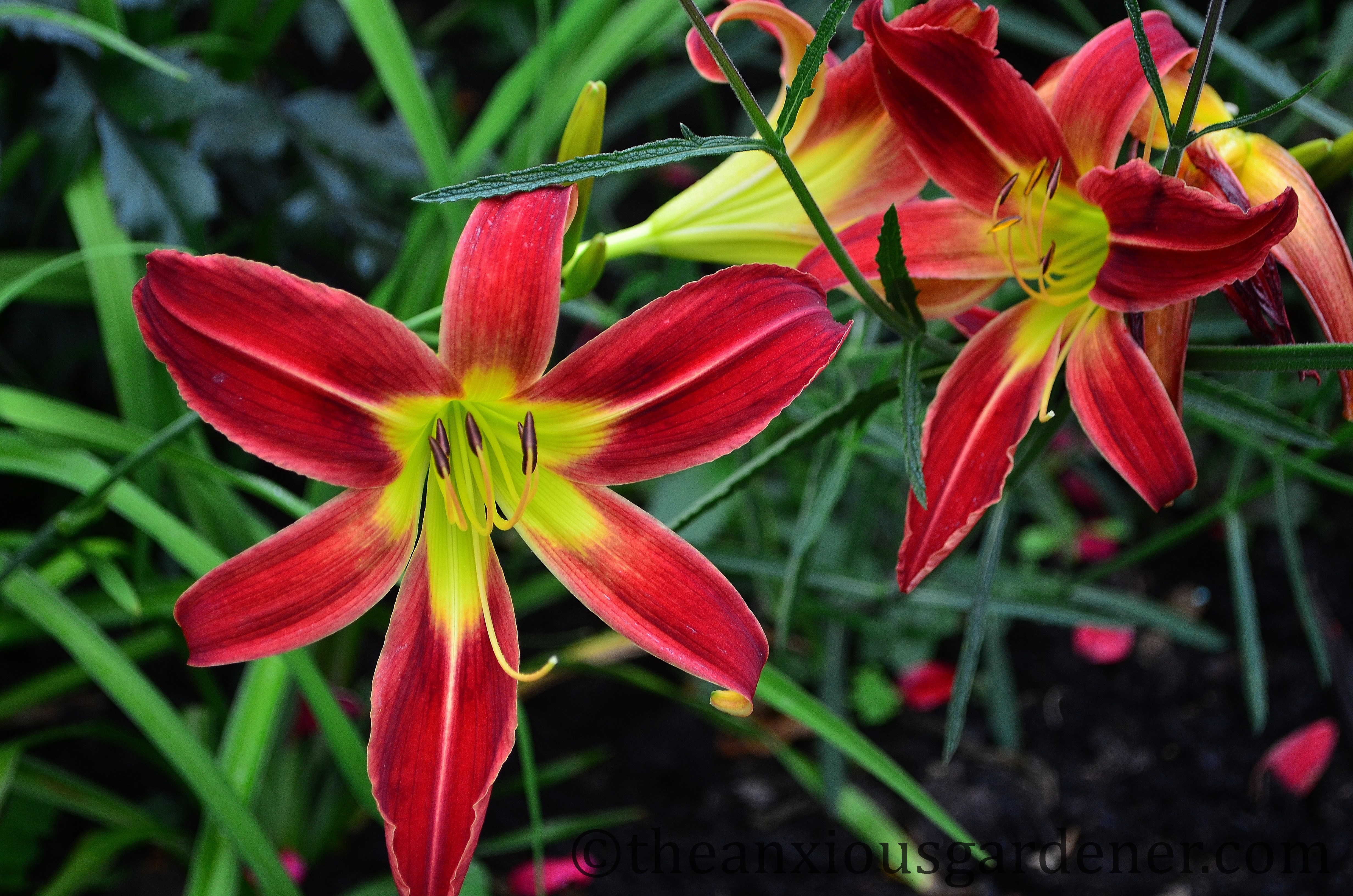 as are spider daylilies. I’ve introduced three varieties into the front of the border but ‘Stoplight’ is the only one to flower this year.
