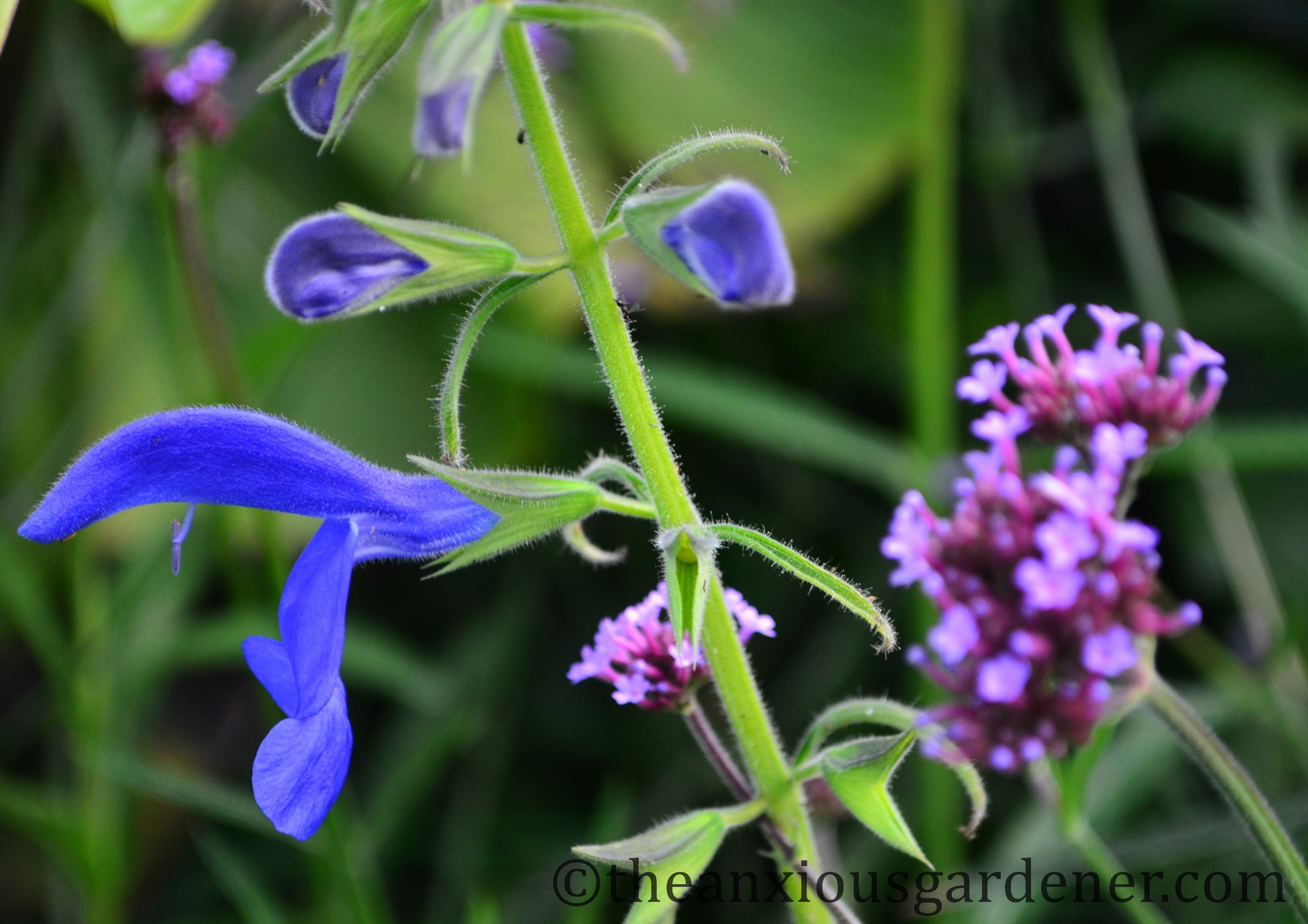 Also at the front is the perfect blue of Salvia patens. This isn’t fully hardy at the Priory and I dig it up and store over-winter in the cold frame.