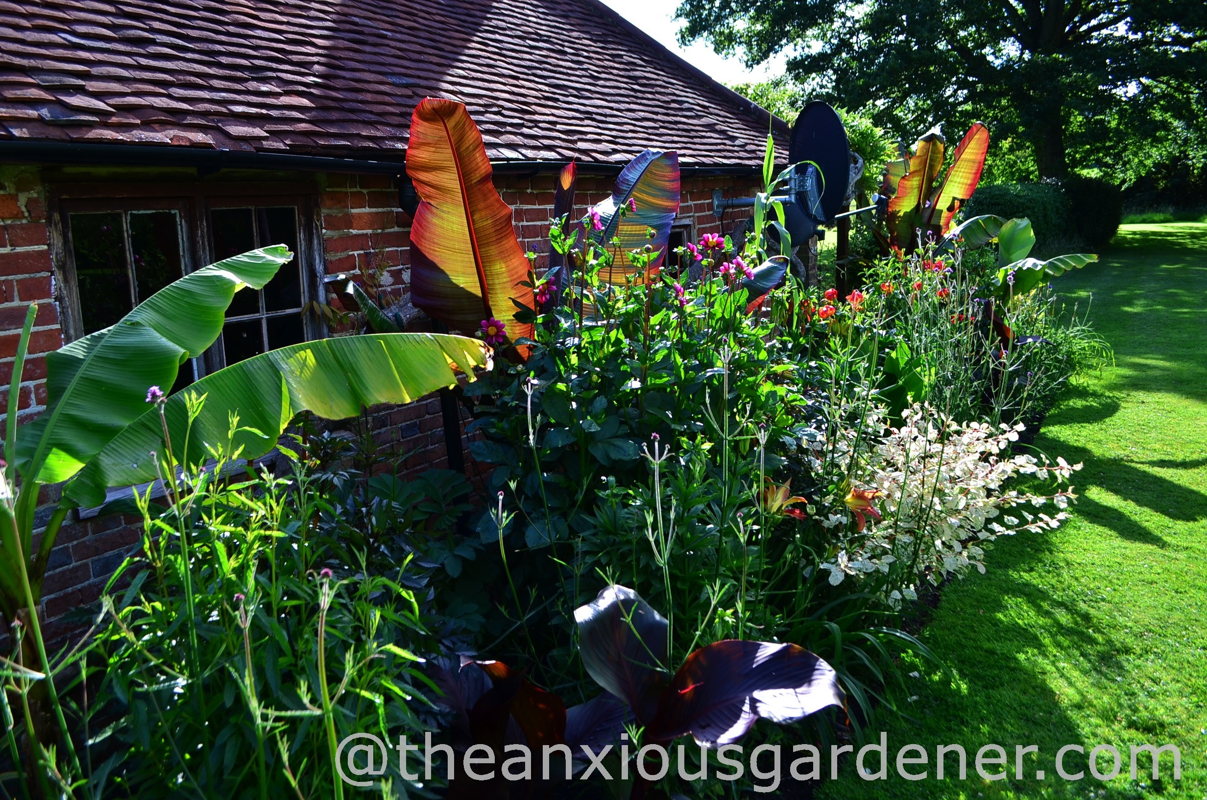 During June the Tropical Border gets under way. And this is a border which I did plan and plant from scratch – and that I really enjoyed. I’ll do a post later in the summer on how it has developed this year; which plants I’ve added … and which I’ve deleted.