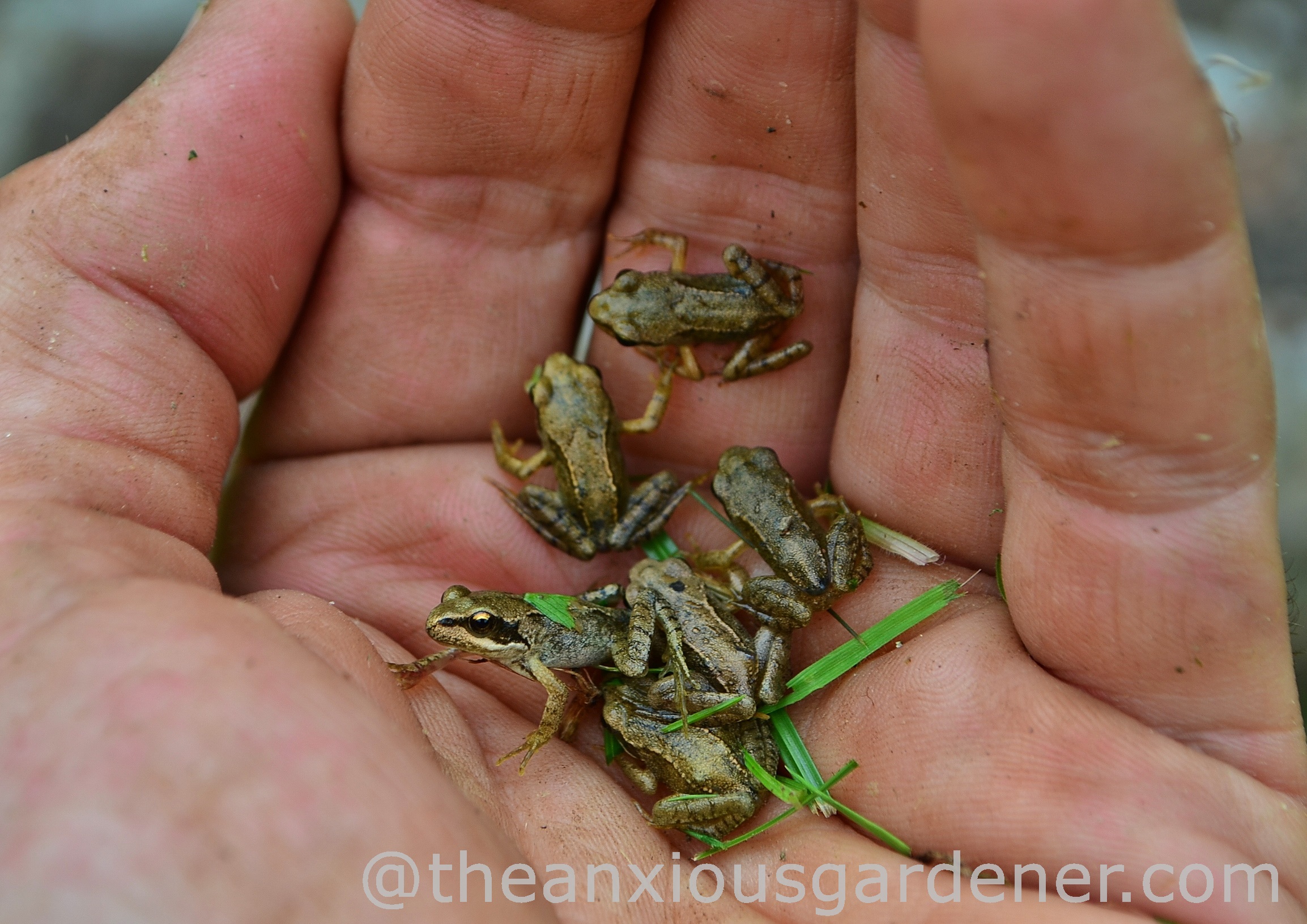 The thought of digging up all the plants sounds like jolly hard work, enough to bring on my palpitations. The borders are looking lovely though – even if they don’t come up to your high standards. The froglets are delightful – quite a handful.