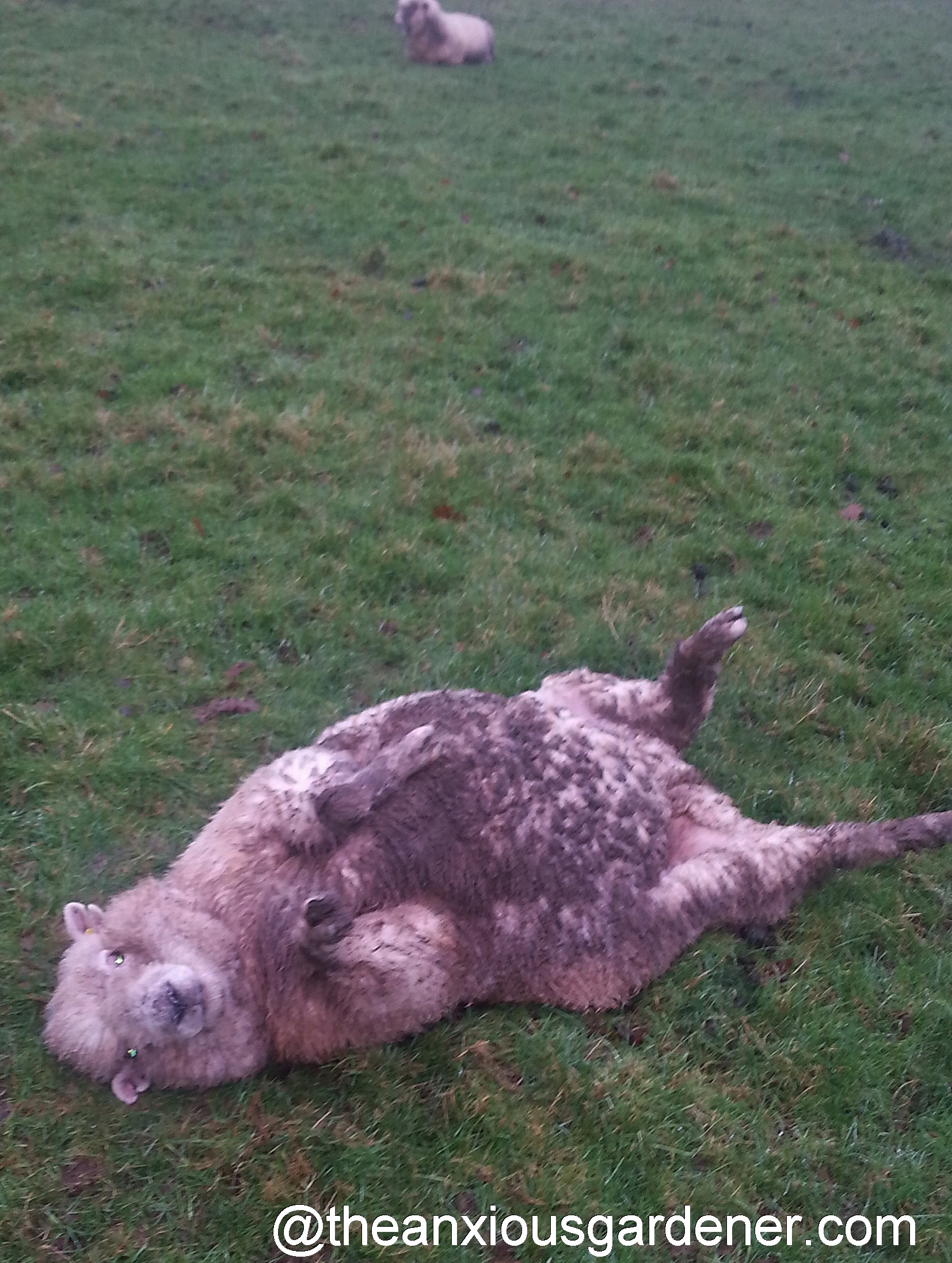 It was only when I befriended a farmer, that I learnt how a ewe might lie down, inadvertently roll on to her back and, tortoise-like, be unable to right herself. This is especially true of short-legged breeds on flat ground and pregnant ewes are particularly prone. And if the fleece is also soaked with rain … well, this is the result: