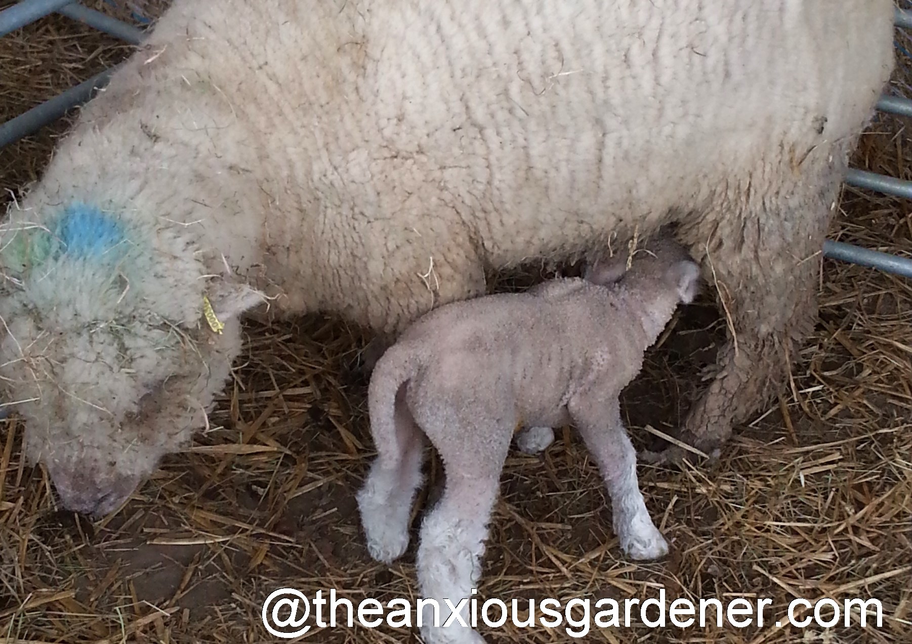 After I’d showered and washed all my clothes on a very hot wash indeed, I got a text from Margaret. She had just hauled a huge, healthy lamb from the bedraggled ewe. Both Mother and Baby are doing handsomely. I needn’t have worried about over-zealous knee clenching after all.