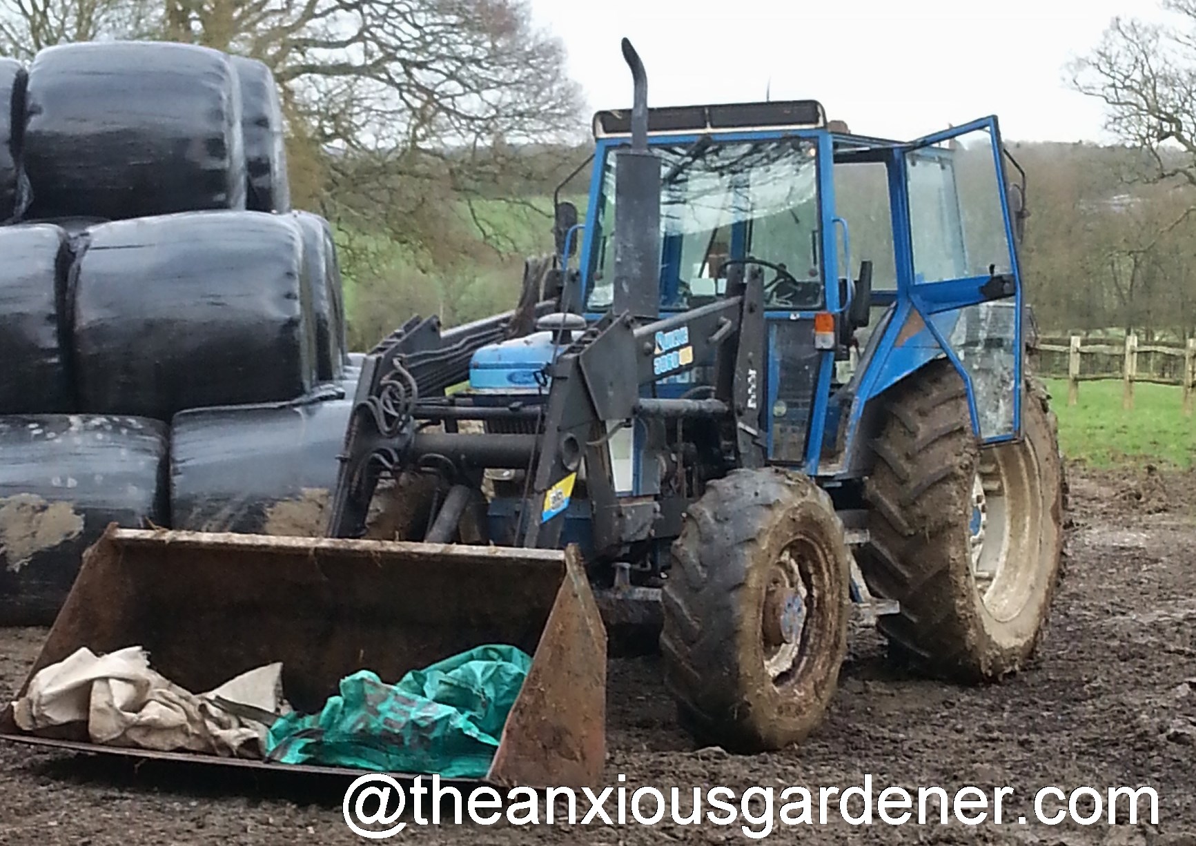The plan was to bring the tractor down from the farm; I would clamber into the bucket with the ewe, clasping her tightly to prevent her jumping out and waddling away to freedom.