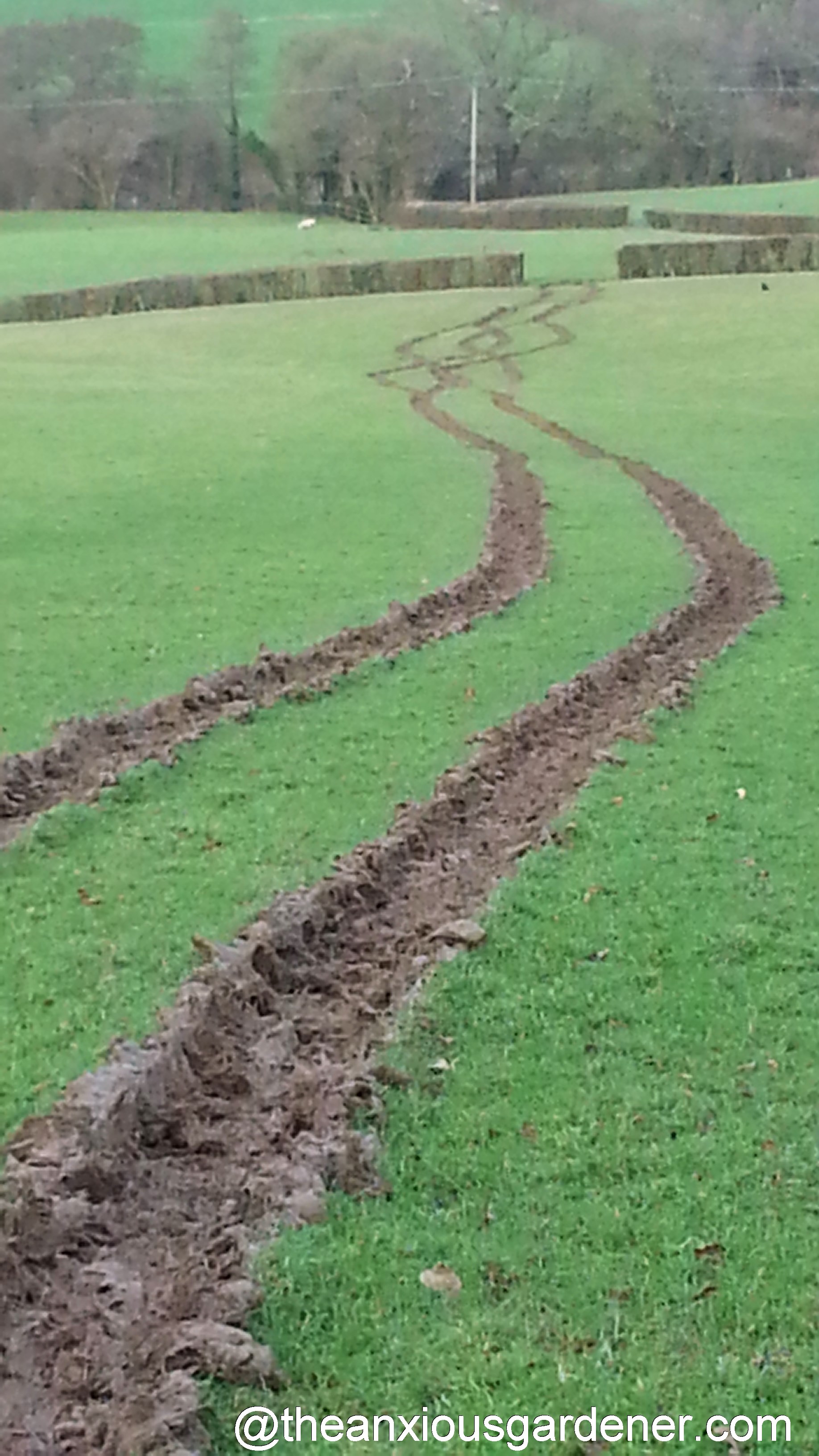 As I walked back down to the Priory, it was obvious why farmers don’t normally choose to drive tractors over wet pasture. In the far distance I could see Cyril the ram. As we had driven up with the ewe, he had marched through the opened gate and Margaret had asked me to shoo him back into his field. I cheerfully, naively said that I would.
