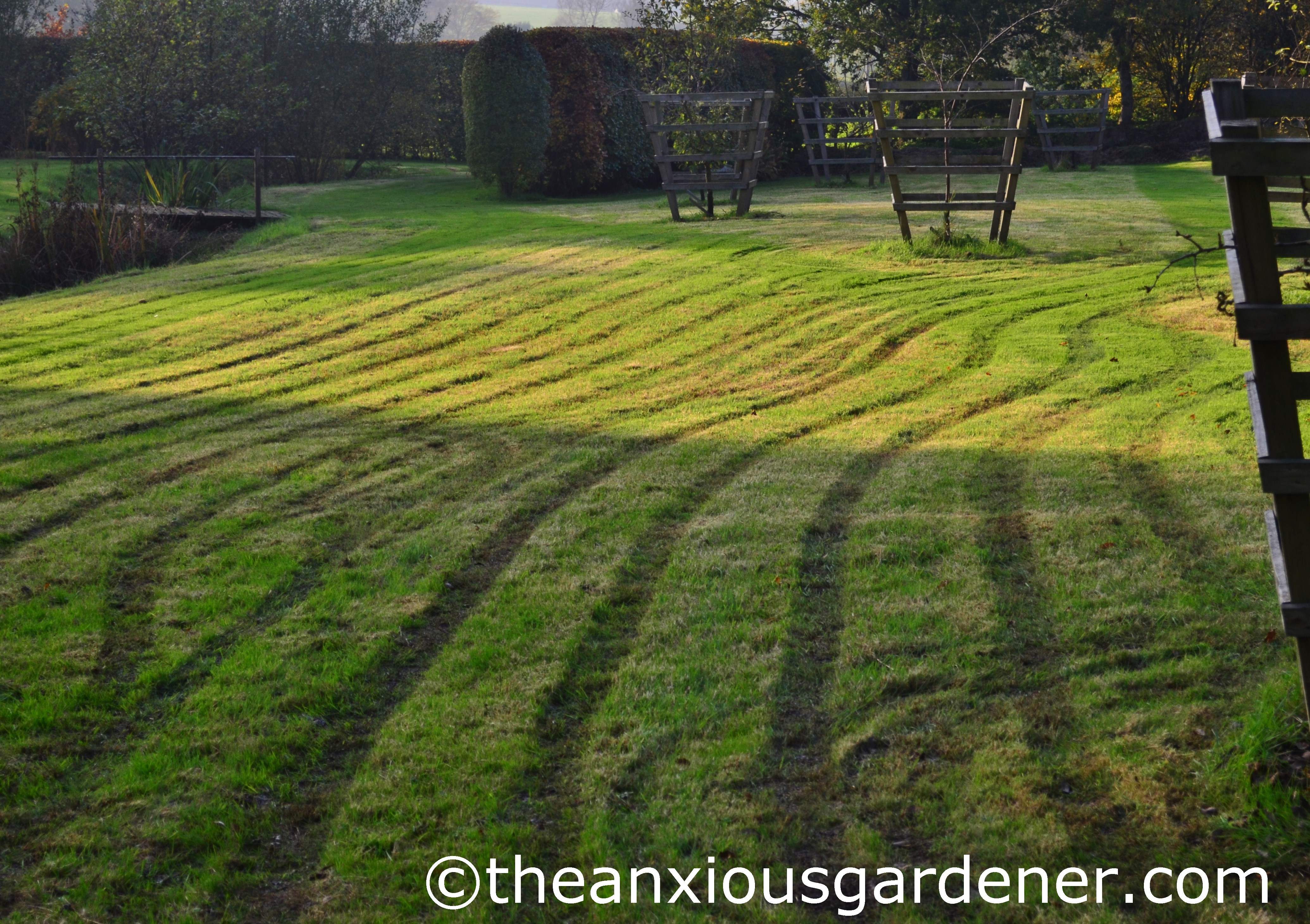 We’ve had a glorious few weeks here in Sussex (and as I type we still haven’t had a frost) but after anxious nail-biting, I finally blinked and phoned my mowing man, Sam, a couple of weeks ago.