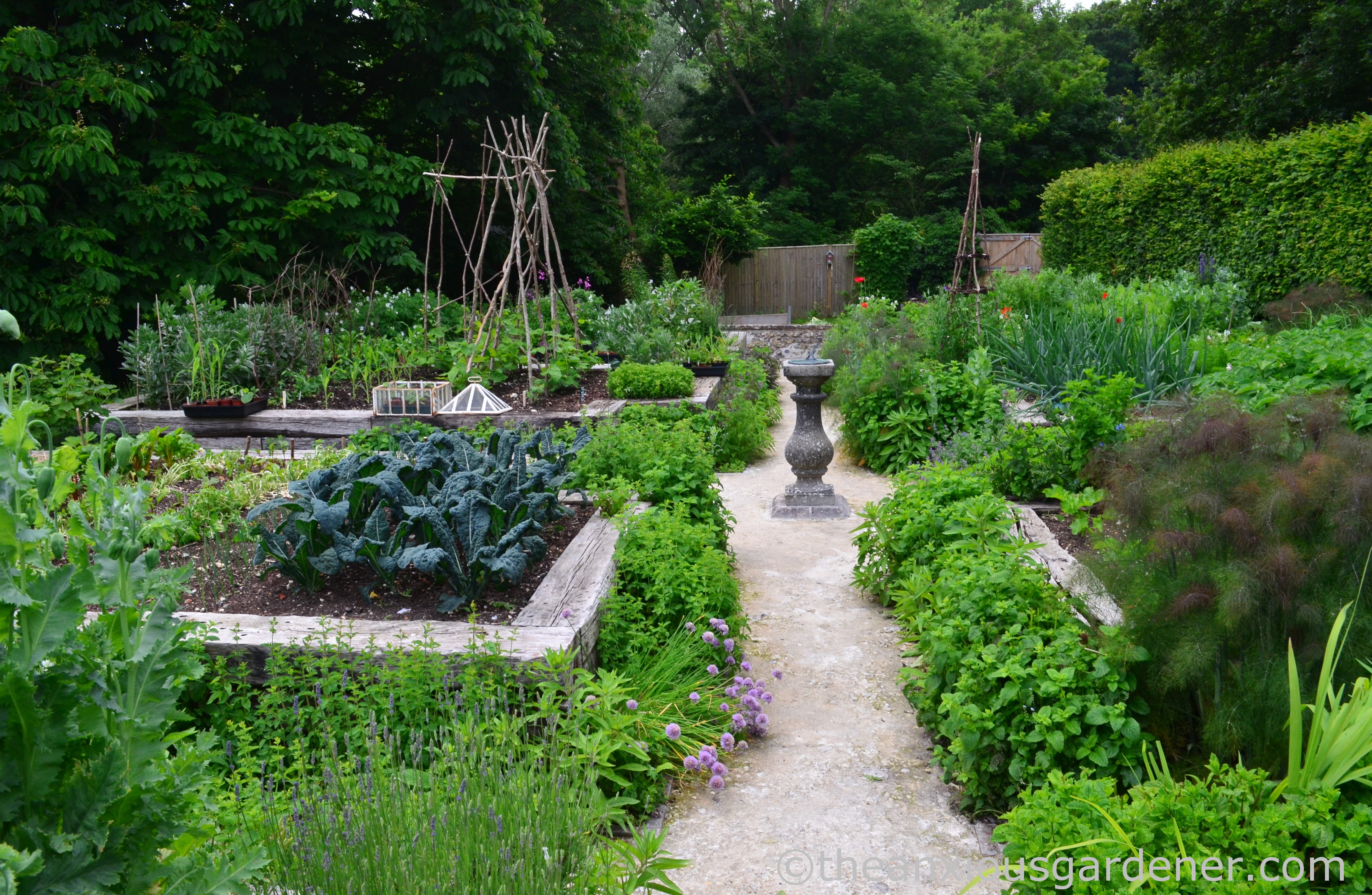 I arrived amongst the raised beds. These are seriously constructed and I winced at the inadequate, half-inch width boards I have used. Unlike mine these will last decades. (After eight years, several boards at The Priory are rotten and need replacing but I suppose eight years is quite a long time). Though still relatively early in the season, the kitchen garden was zingy green and harvest-able … but I didn’t.