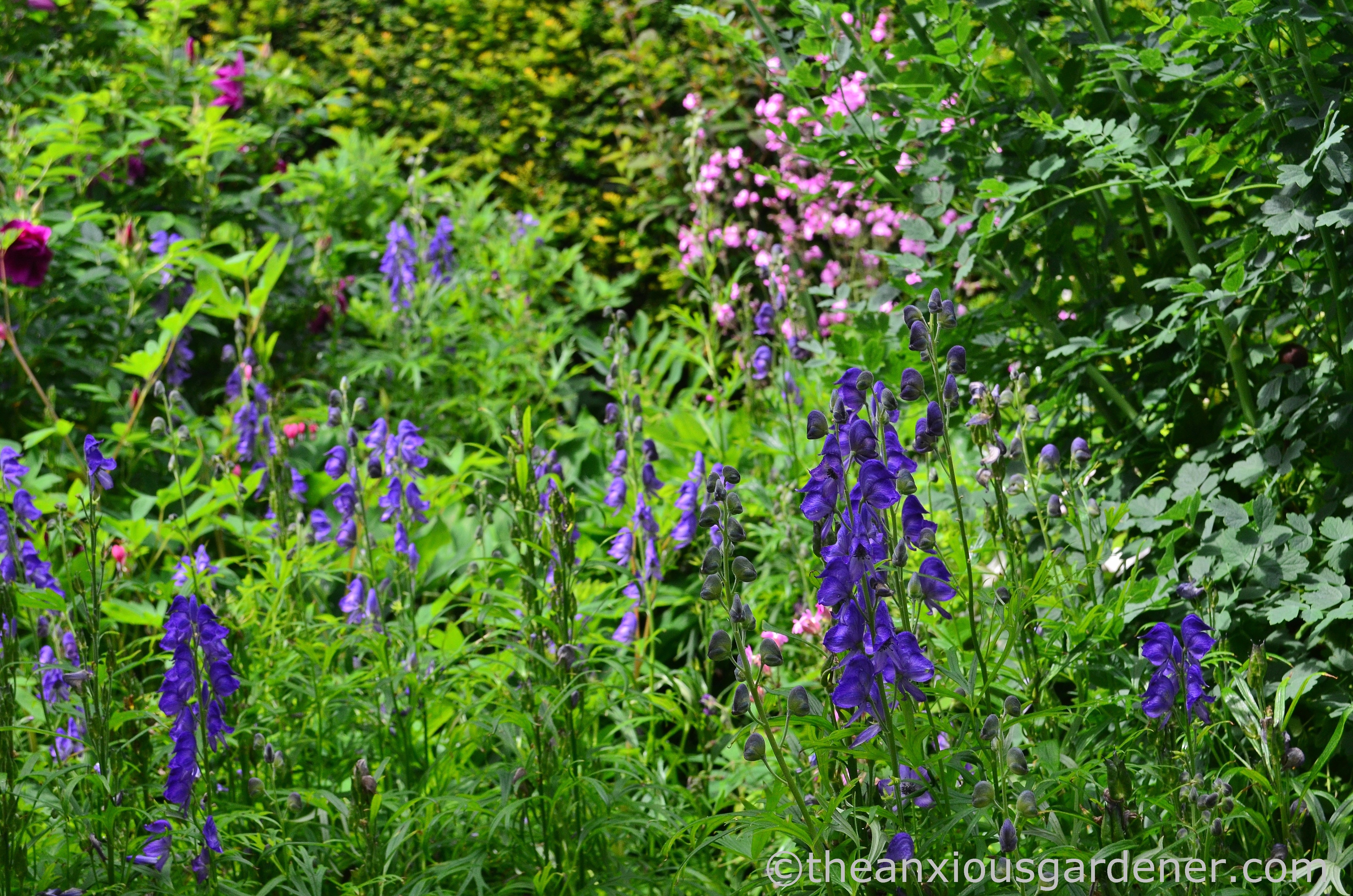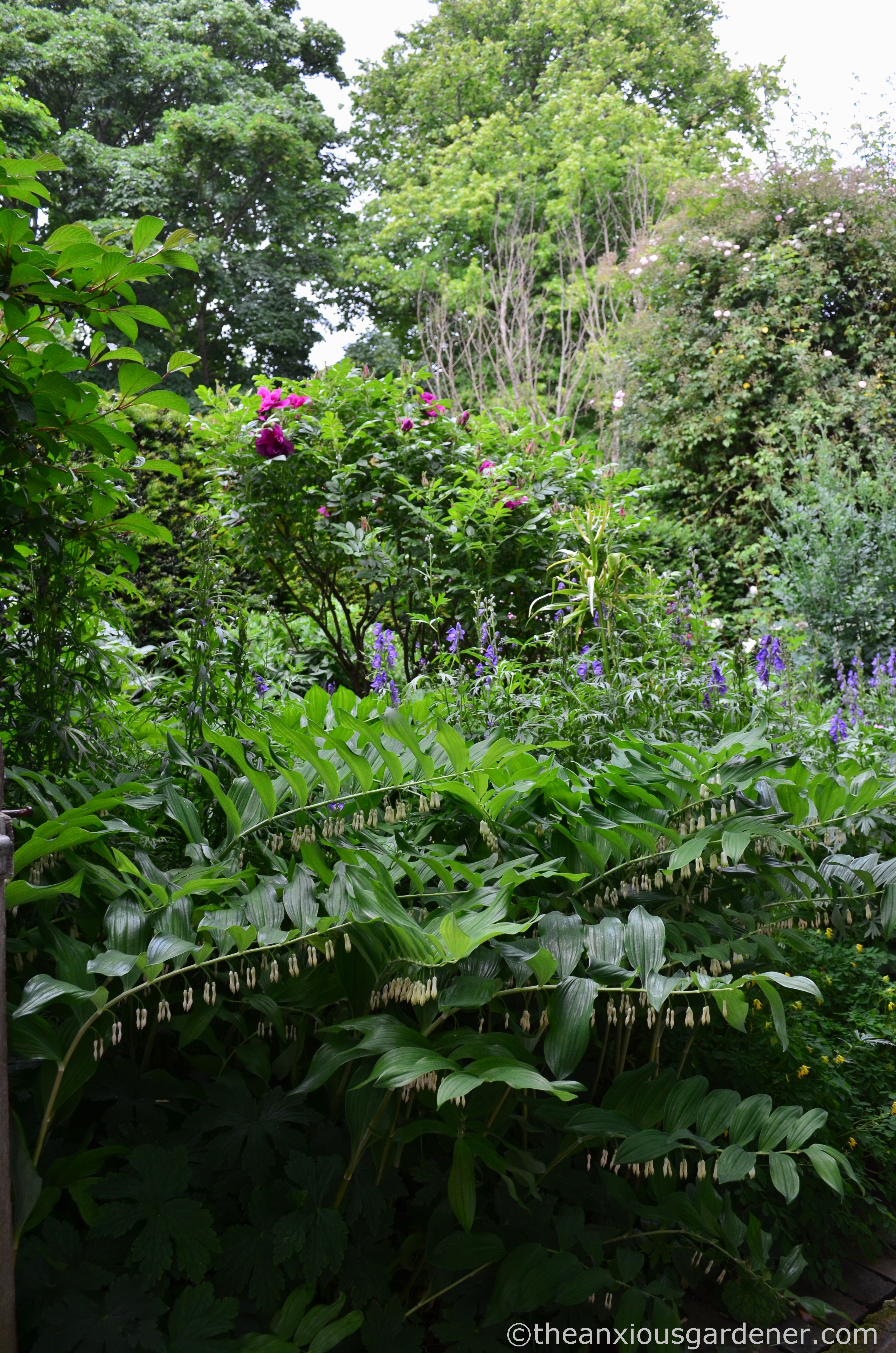 Above the Solomon’s seal rose spires of monkshood (Aconitum napellus): a plant I love despite its toxicity and one that happily flowers in shade or sun (and isn’t prey to slugs).
