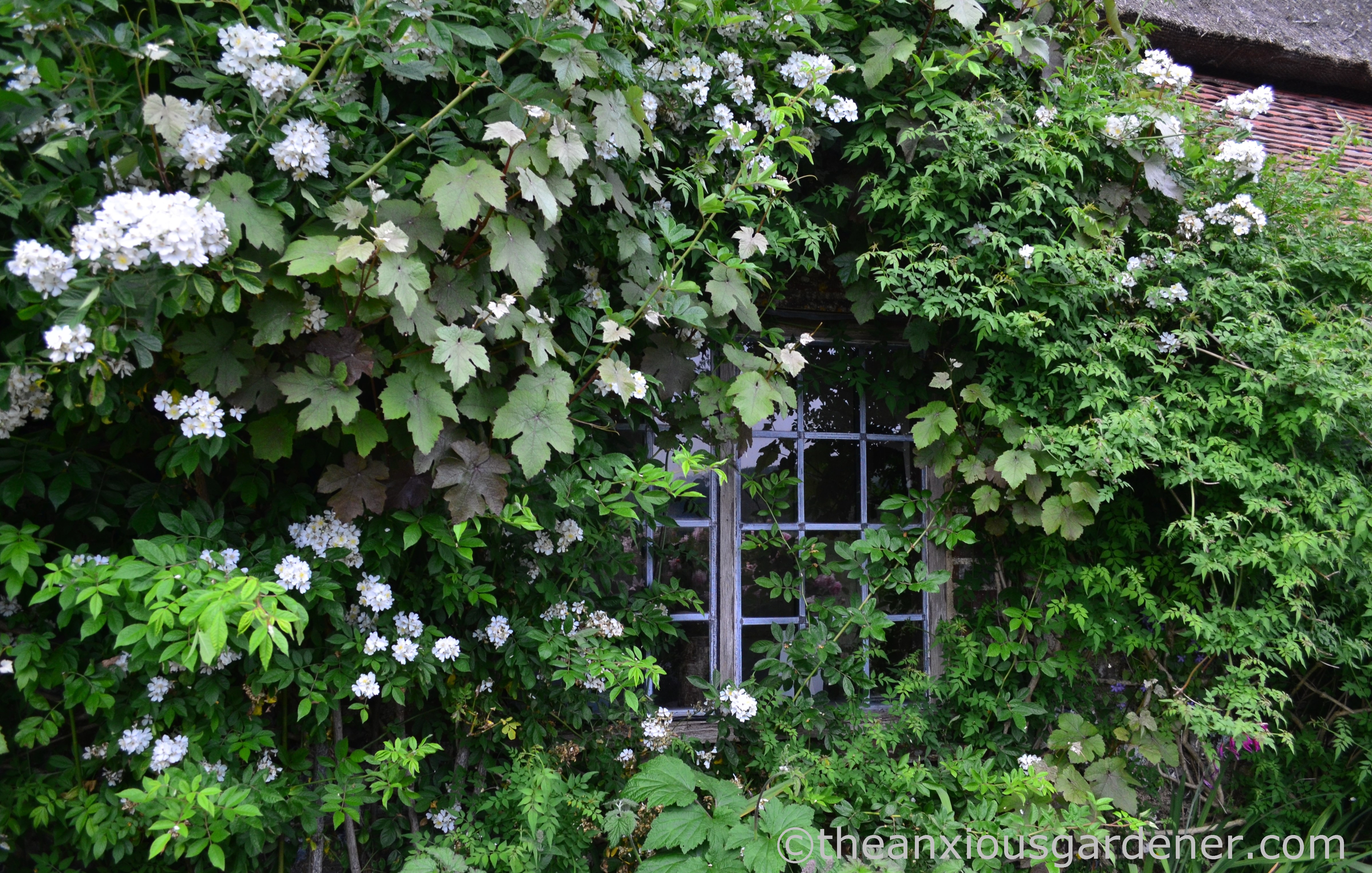 with white rambling rose, summer jasmine and vine racing to obscure windows.