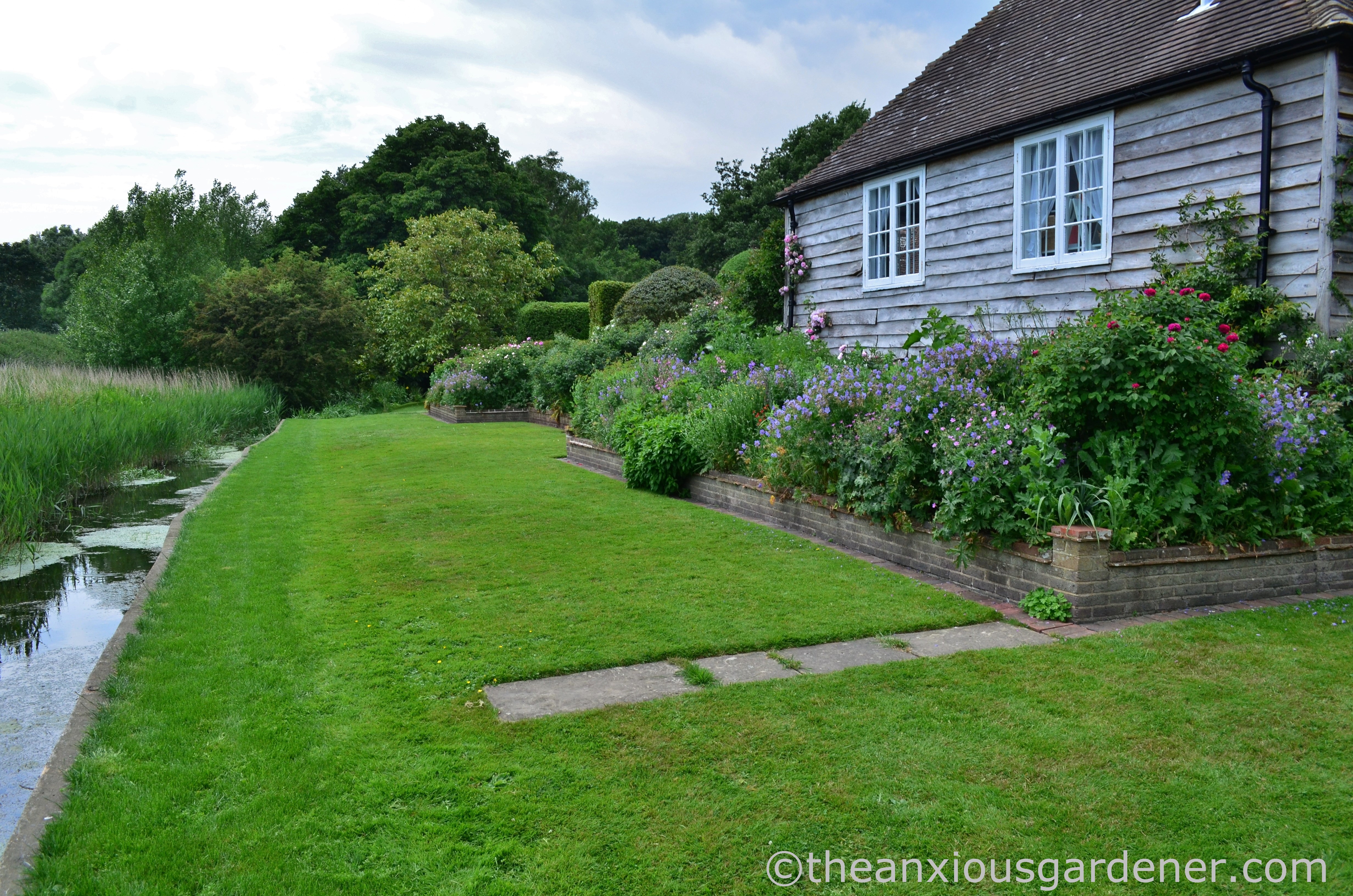 I walked along the bank of a reed-filled pond to the rear of the ticket office and towards the beds and borders near the house.
