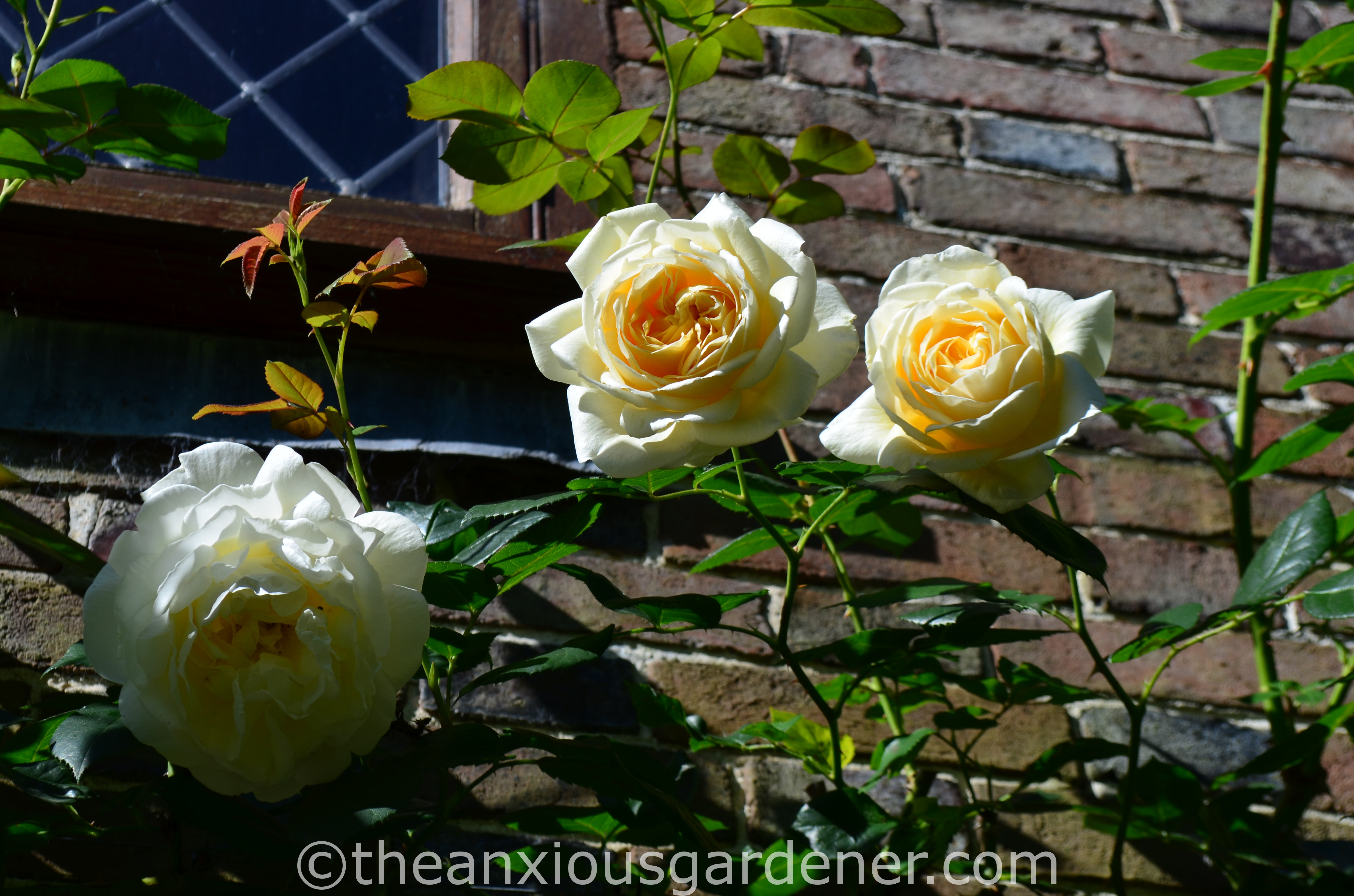 Whereas, Rosa ‘Madame Alfred Carrière’ I did plant. It grows above the kitchen door and window in almost perpetual shade, barely suffers from rust nor black spot and bears heavy, fragrant, repeat blooms. My kind of rose and perfect for this north facing wall.