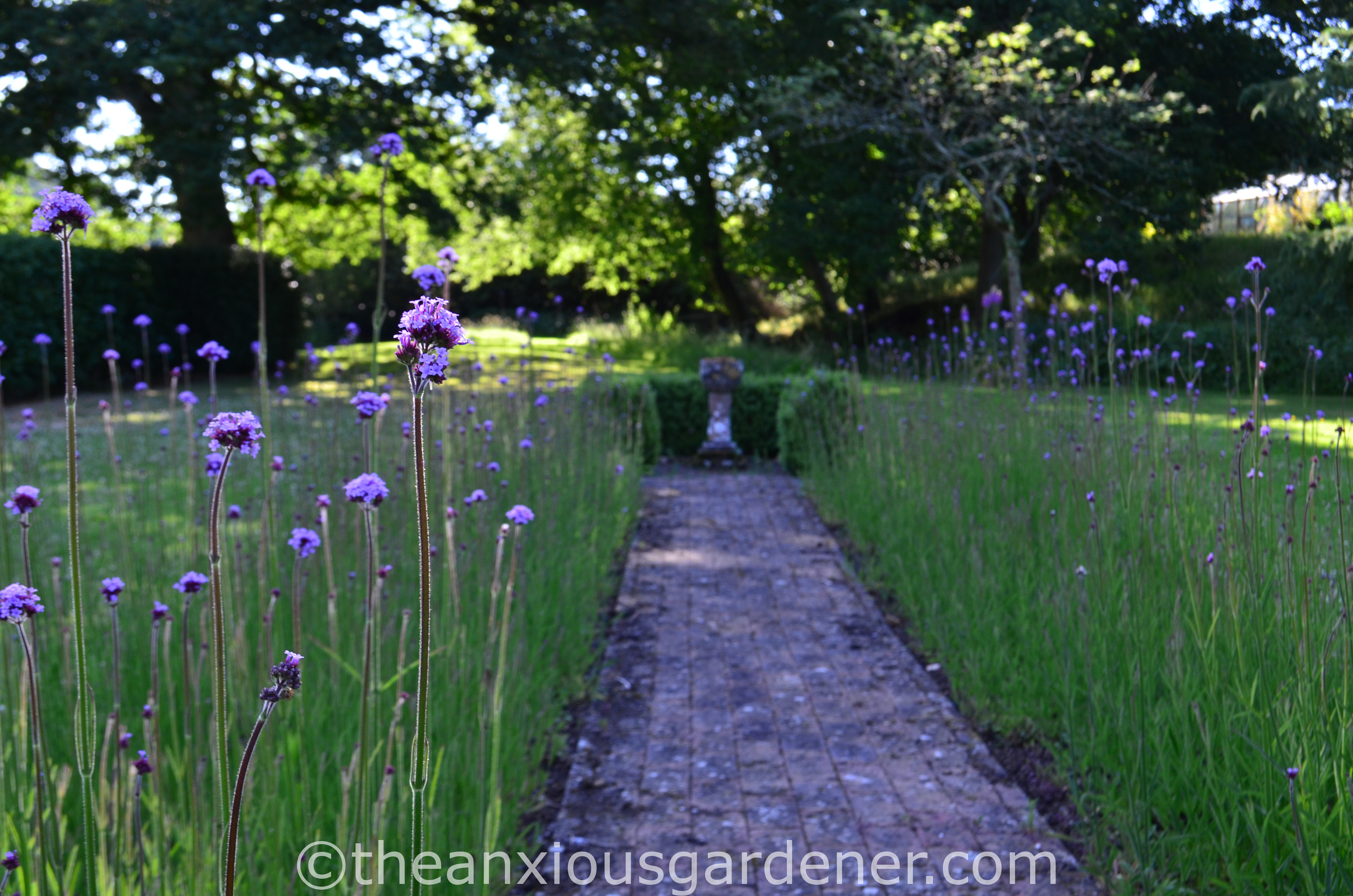 My two twelve metre Verbena bonariensis borders are just coming into flower.