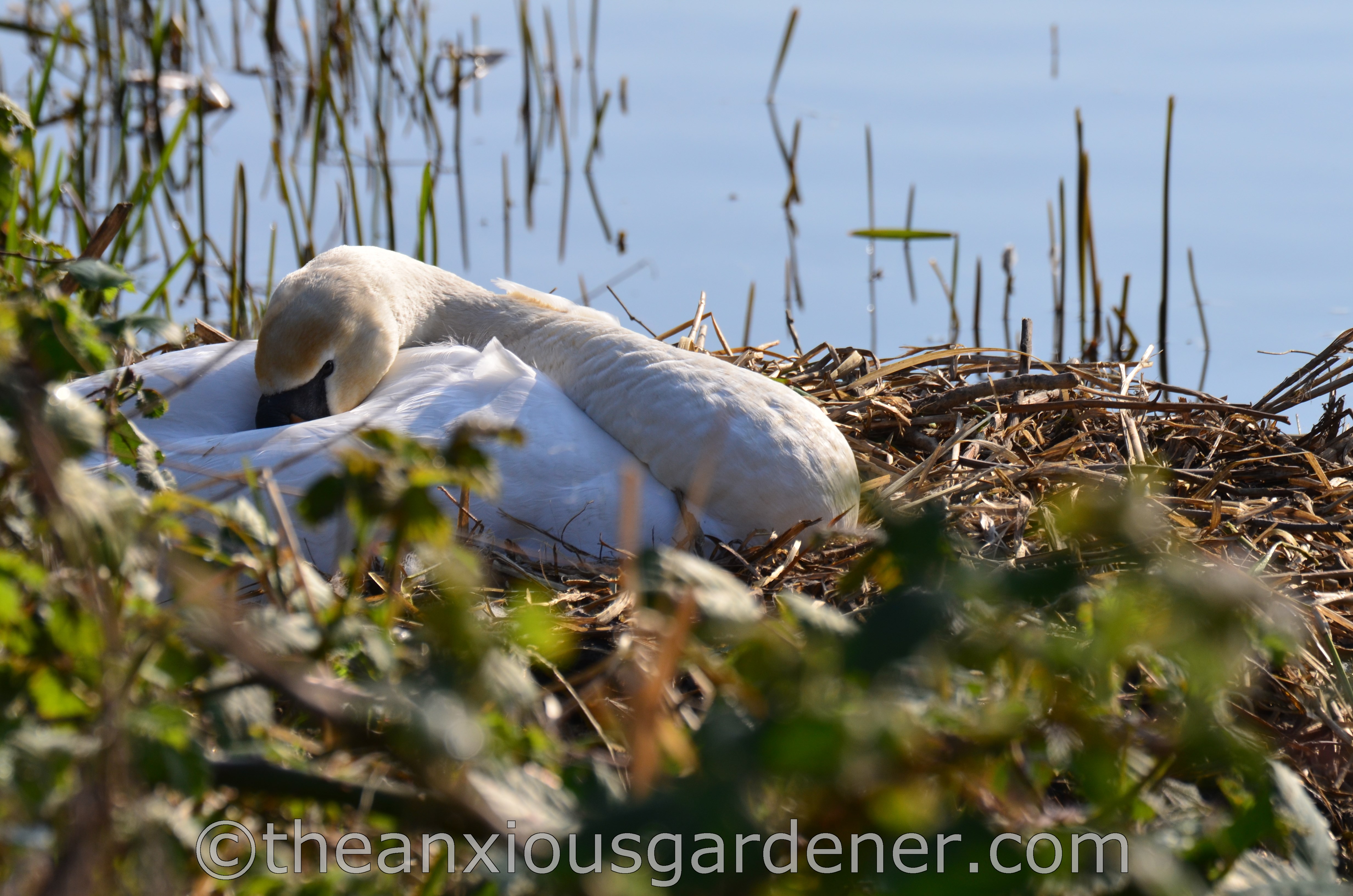 The swan’s mate sits on her nest directly in front of our house. This is her second clutch of eggs. She hatched three cygnets a couple of months ago but they soon disappeared, prey to who knows what. There may be cygnets up the canal towards Stroud, there may be cygnets down the canal towards the Severn but here we have no cygnets.